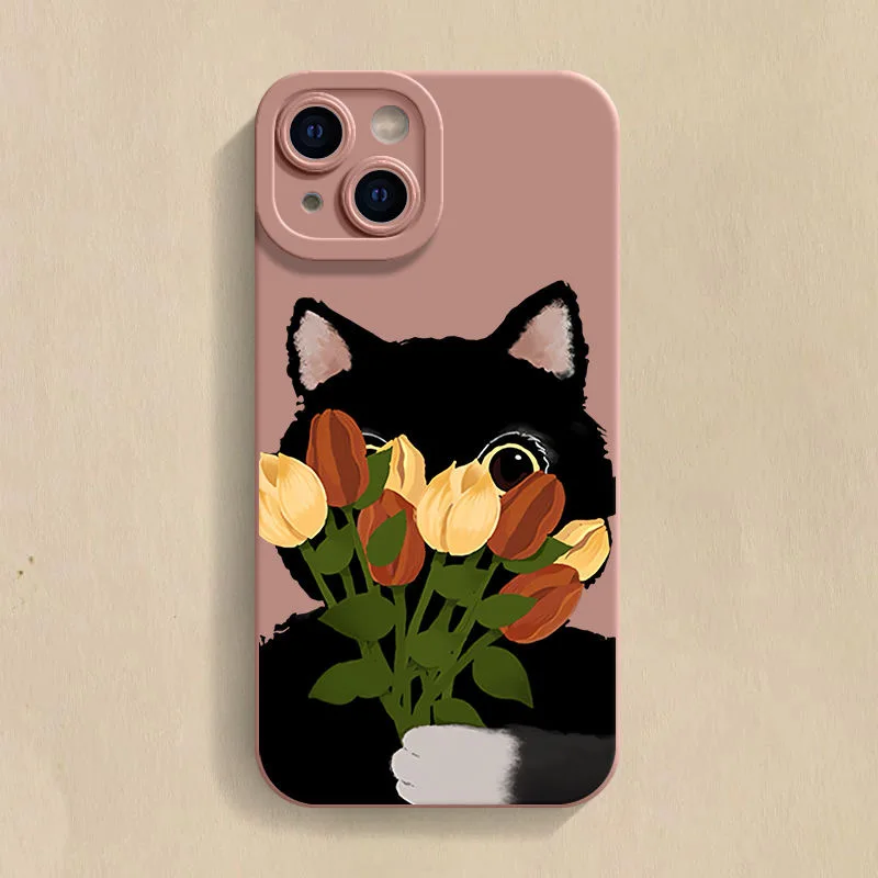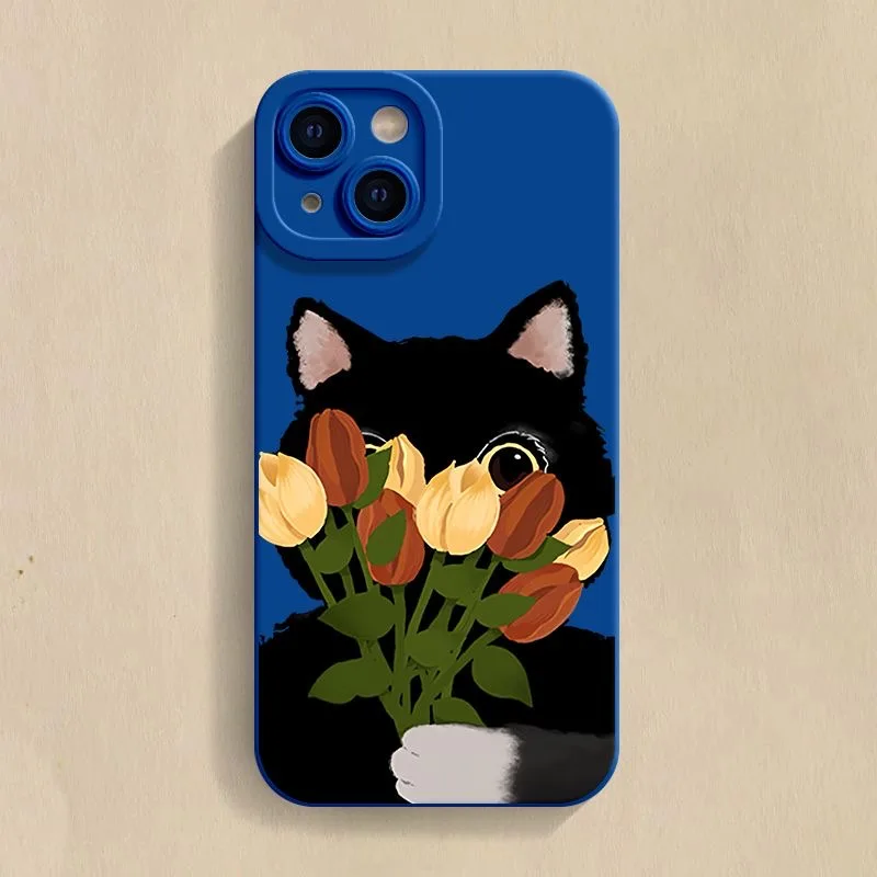 Funda de teléfono de gato negro con flores para Samsung Galaxy S25 Ultra S24 S23 S22 S21 Plus S20FE A55 A54 A35 A15 funda suave de silicona