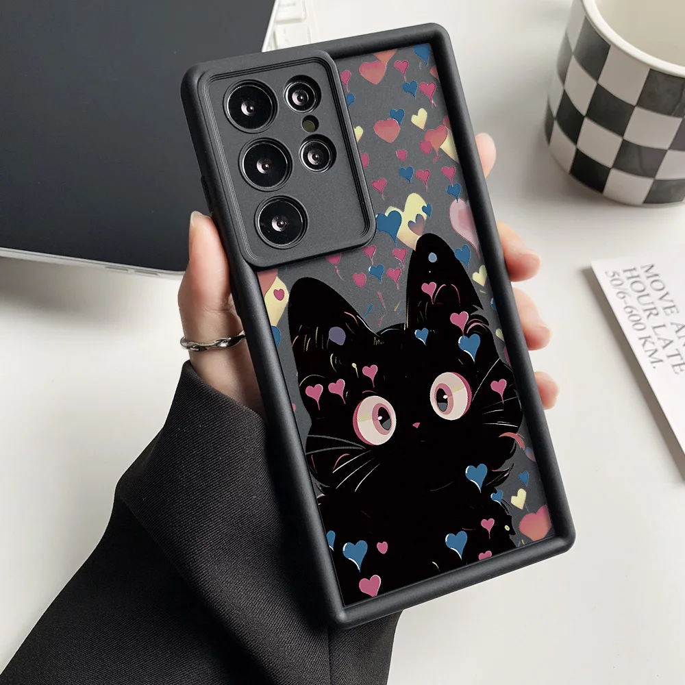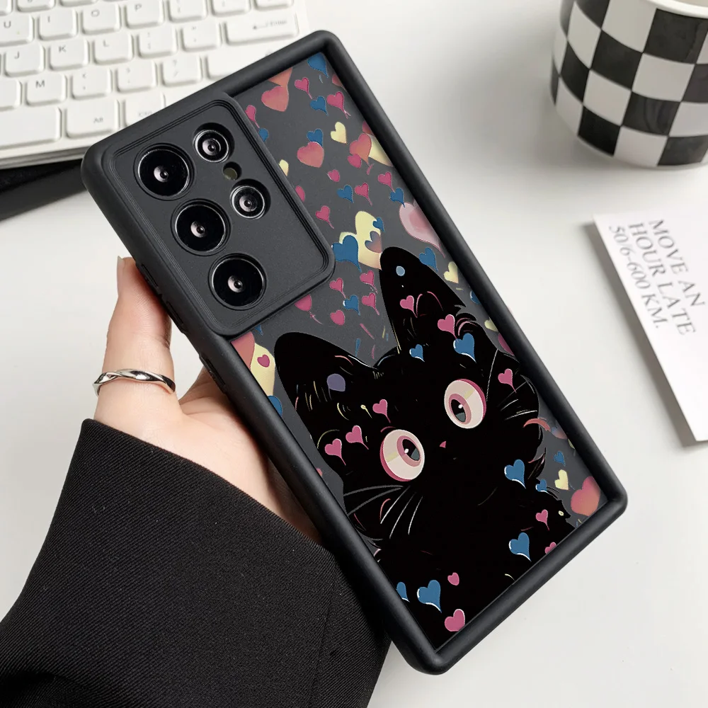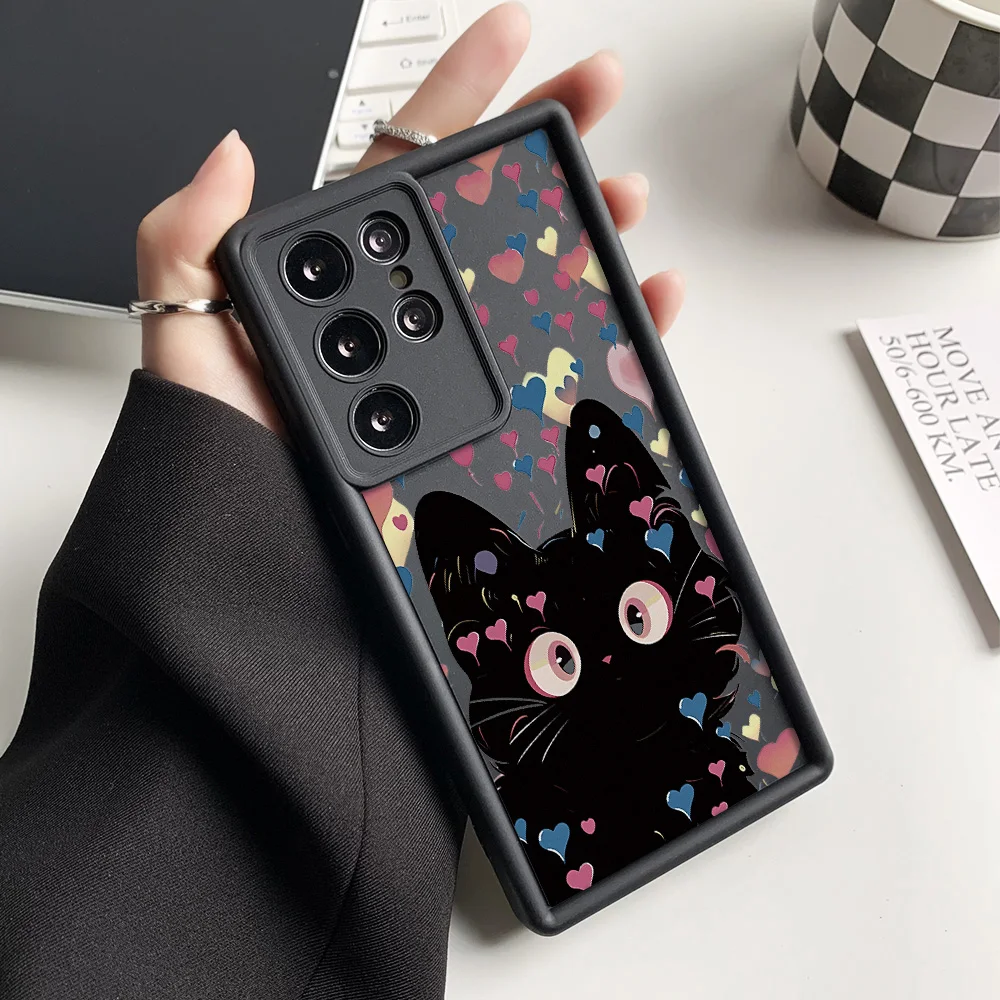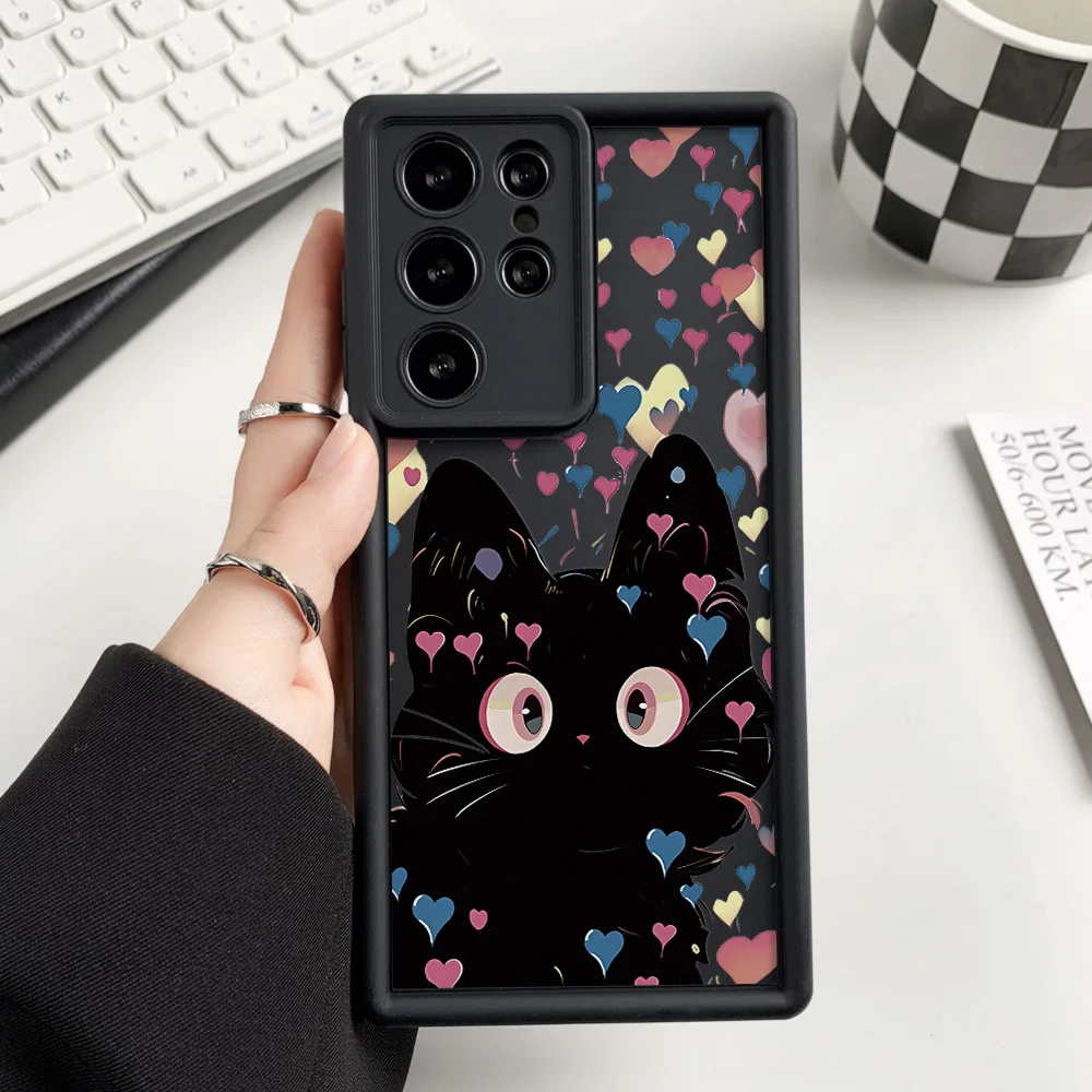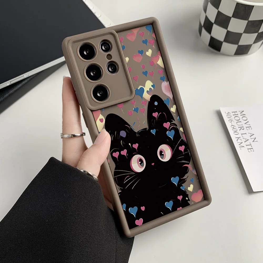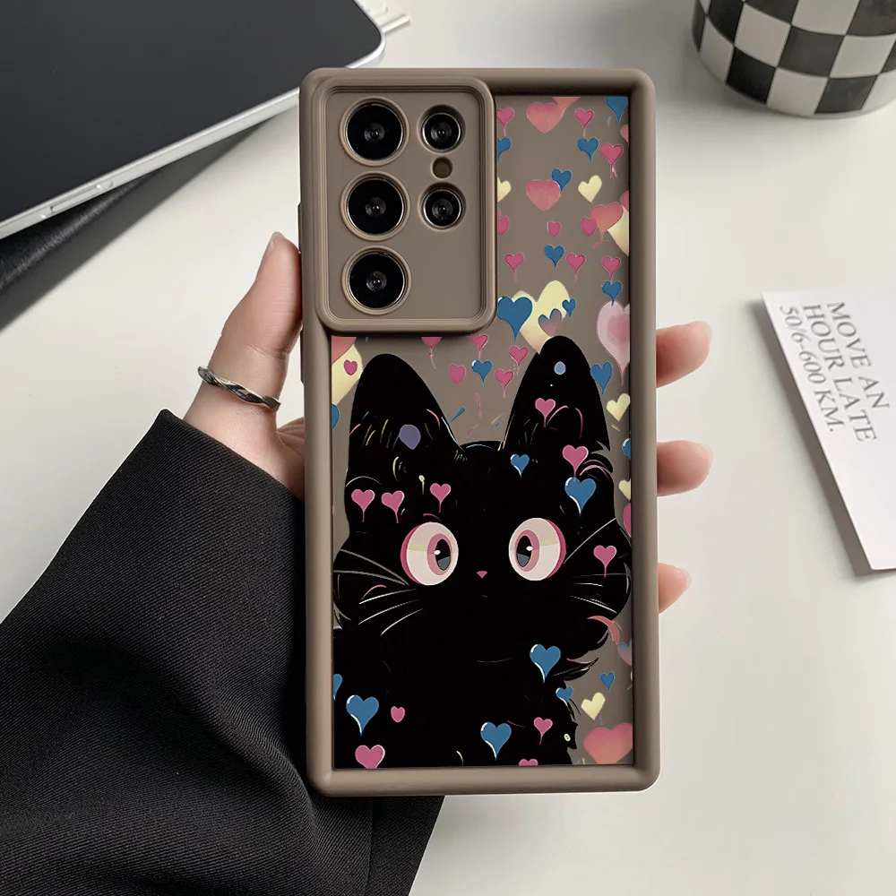 Funda de teléfono de gato de silicona líquida para Samsung Galaxy S25 Ultra Funda S24 FE S23 Ultra S22 Plus S21 S20 FE funda a prueba de golpes Coque