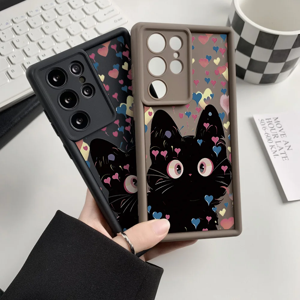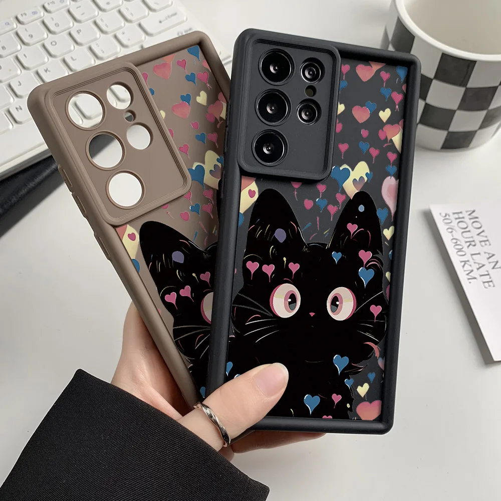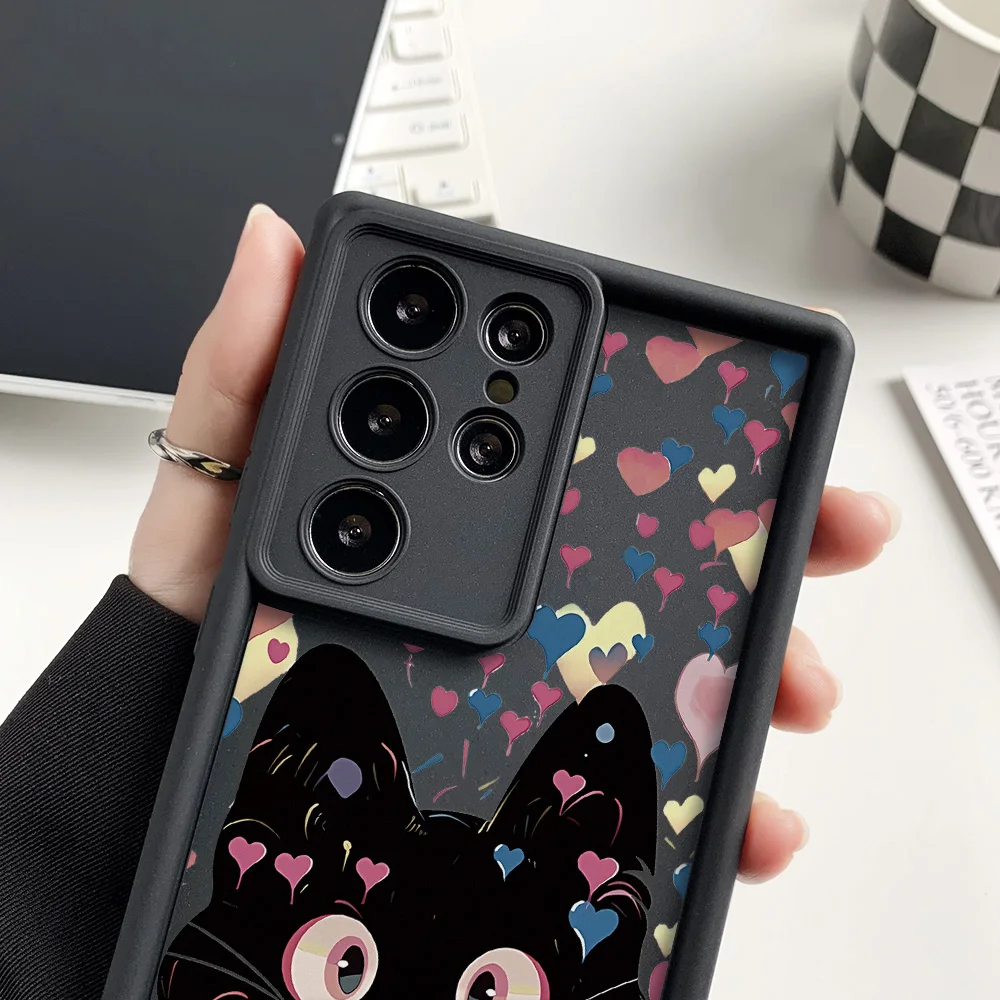 Funda de teléfono de gato de silicona líquida para Samsung Galaxy S25 Ultra Funda S24 FE S23 Ultra S22 Plus S21 S20 FE funda a prueba de golpes Coque