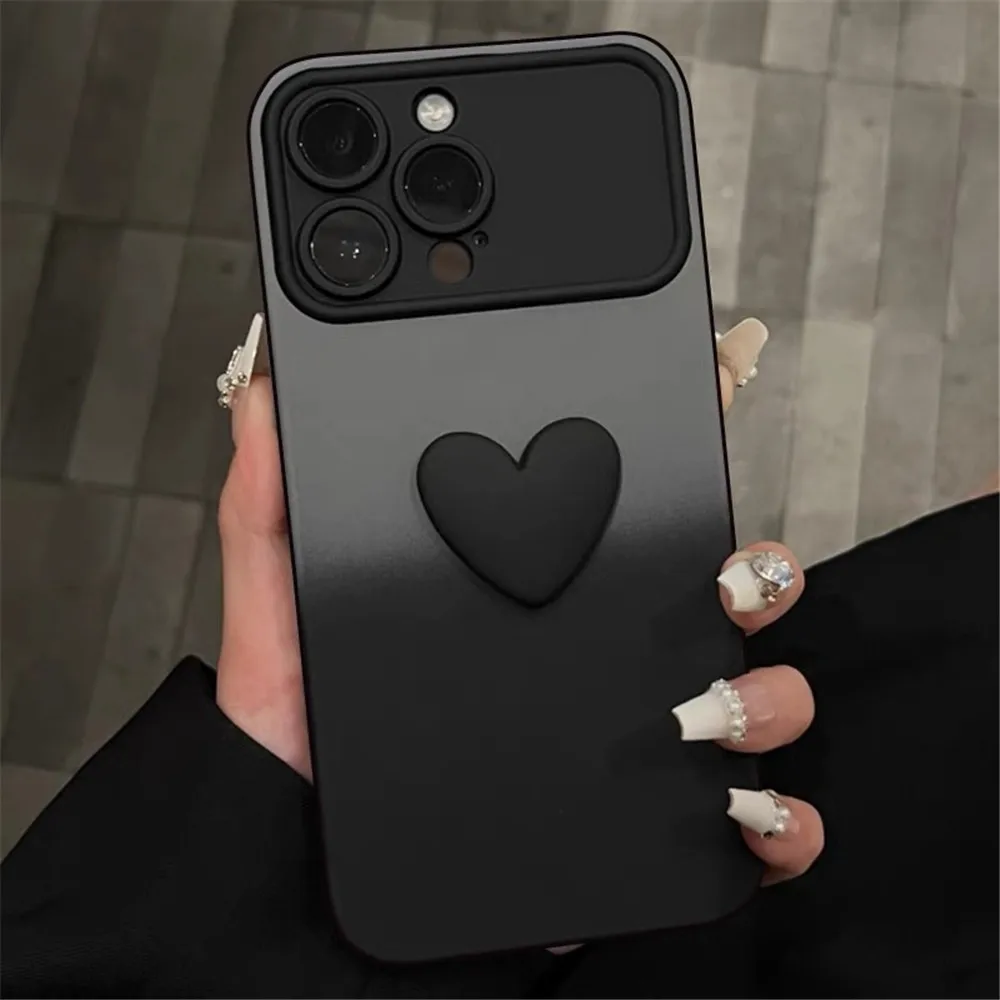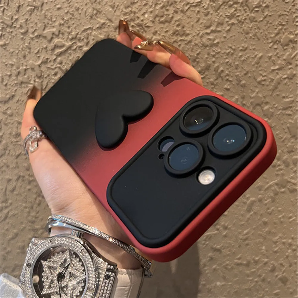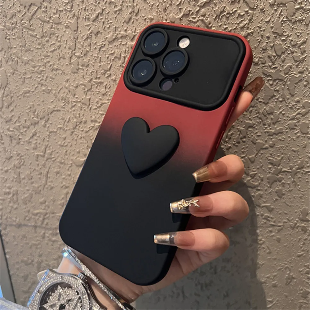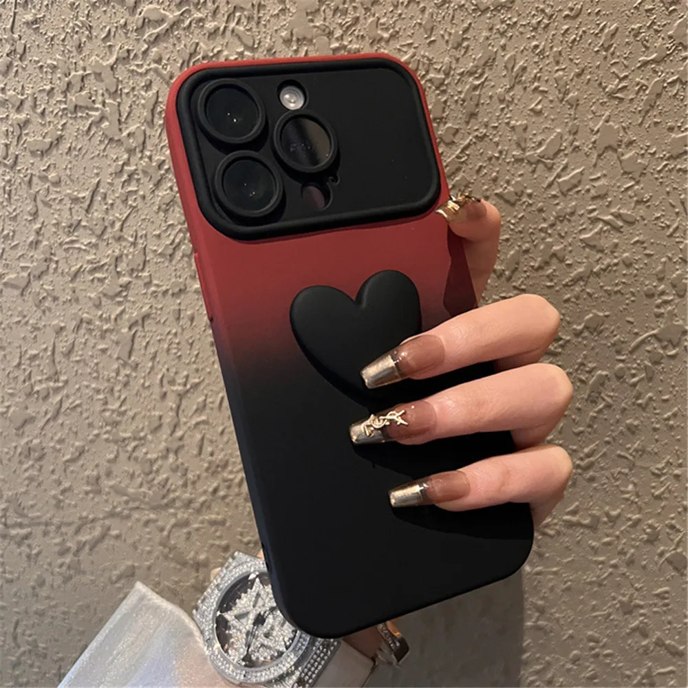 Comprar Funda de teléfono con gradiente de silicona para iPhone, cubierta de ventana grande de caramelo colorido, lindo INS 3D, corazón de amor, 11, 12, 13, 14, 15 Pro Max, 15Pro, 14