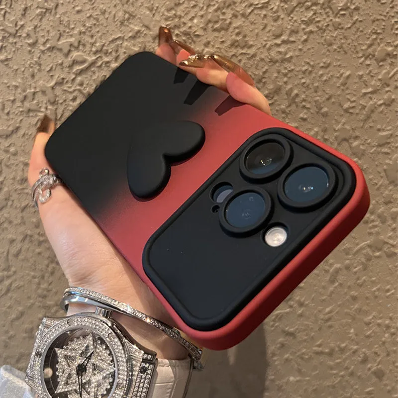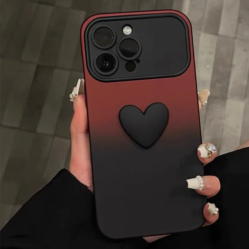 Comprar Funda de teléfono con gradiente de silicona para iPhone, cubierta de ventana grande de caramelo colorido, lindo INS 3D, corazón de amor, 11, 12, 13, 14, 15 Pro Max, 15Pro, 14