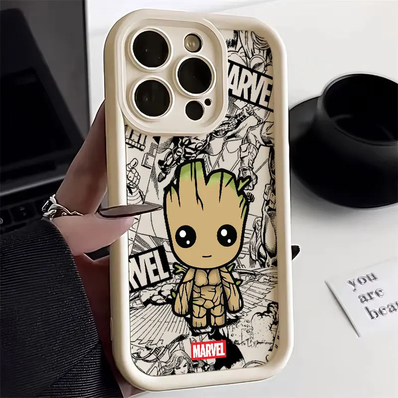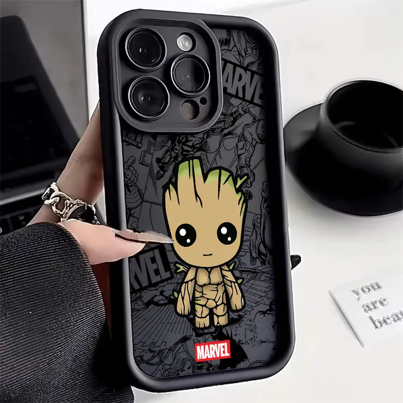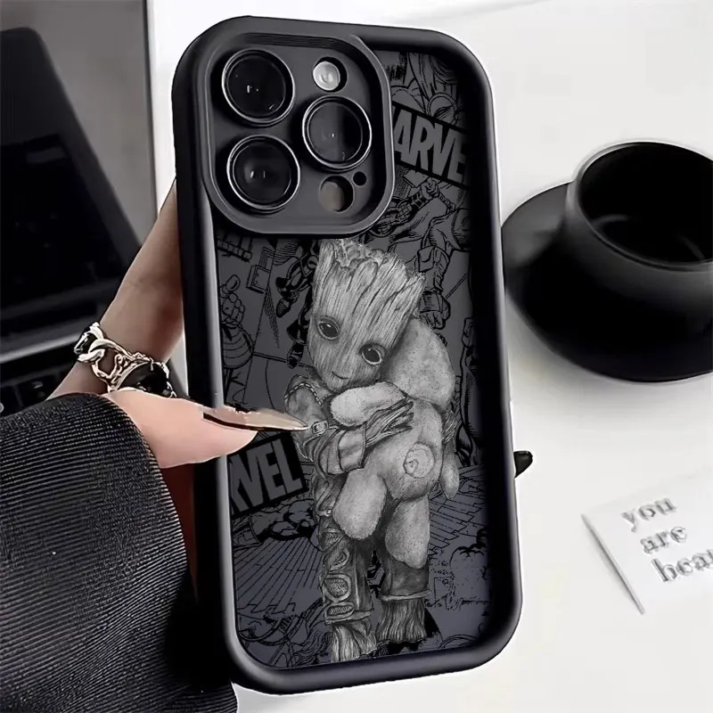 Funda de teléfono Groot Rocket Raccoon Marvel para iPhone 16 15 14 13 12 11 Pro Max Mini XR XS X 7 8 6 6s Plus cubierta trasera suave de TPU