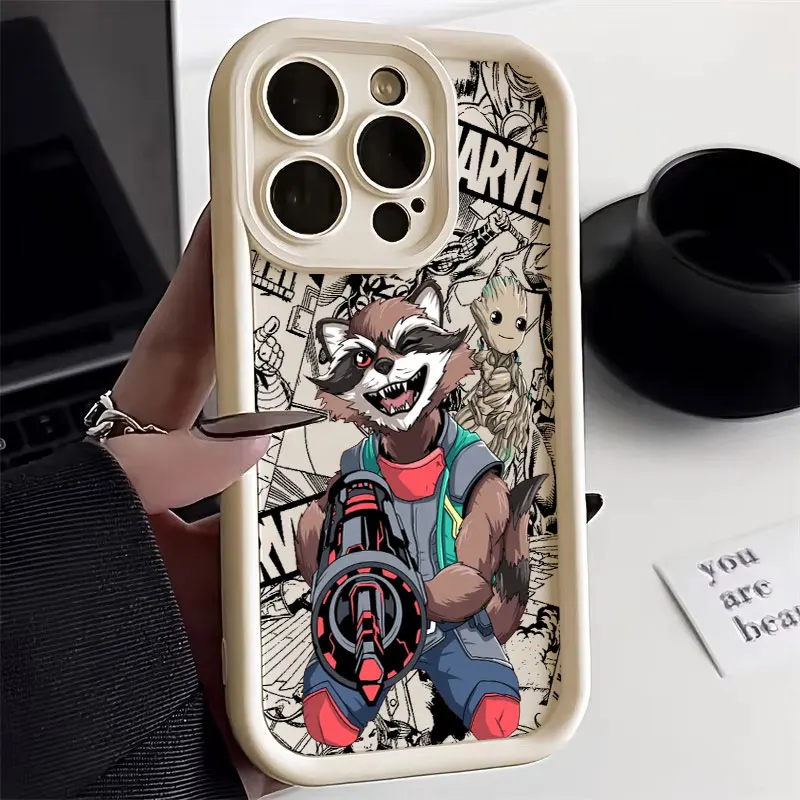 Funda de teléfono Groot Rocket Raccoon Marvel para iPhone 16 15 14 13 12 11 Pro Max Mini XR XS X 7 8 6 6s Plus cubierta trasera suave de TPU - imagen 3