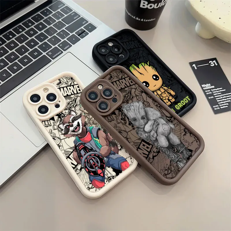 Funda de teléfono Groot Rocket Raccoon Marvel para iPhone 16 15 14 13 12 11 Pro Max Mini XR XS X 7 8 6 6s Plus cubierta trasera suave de TPU - imagen 1