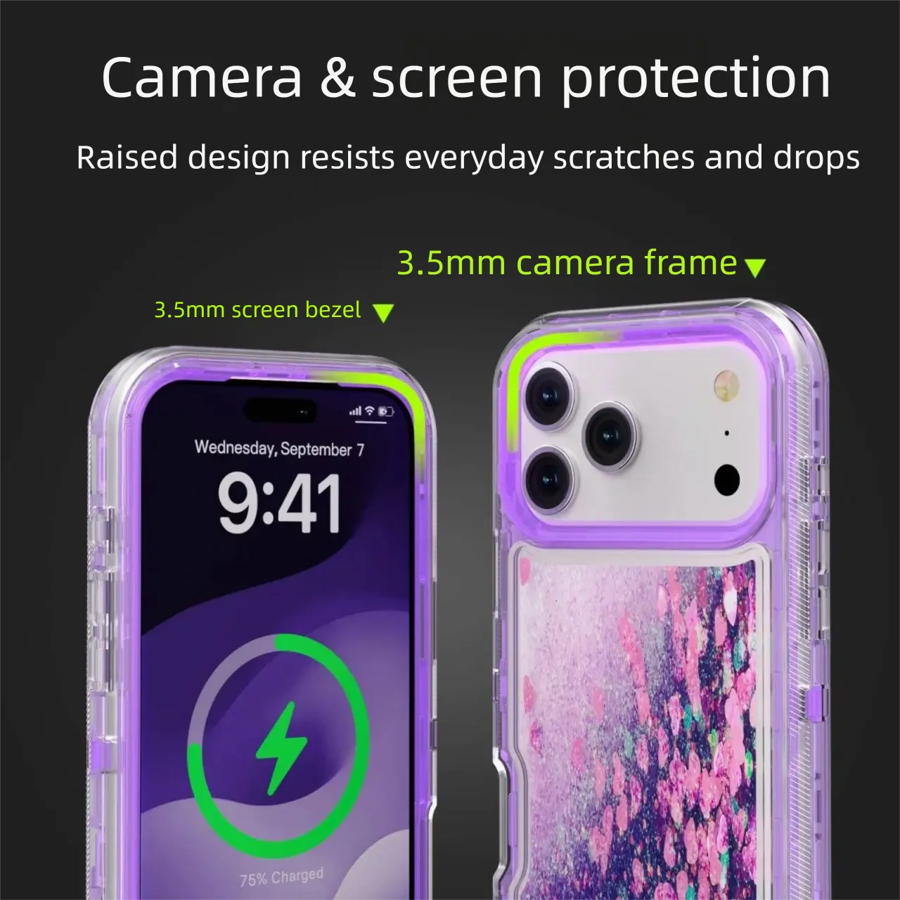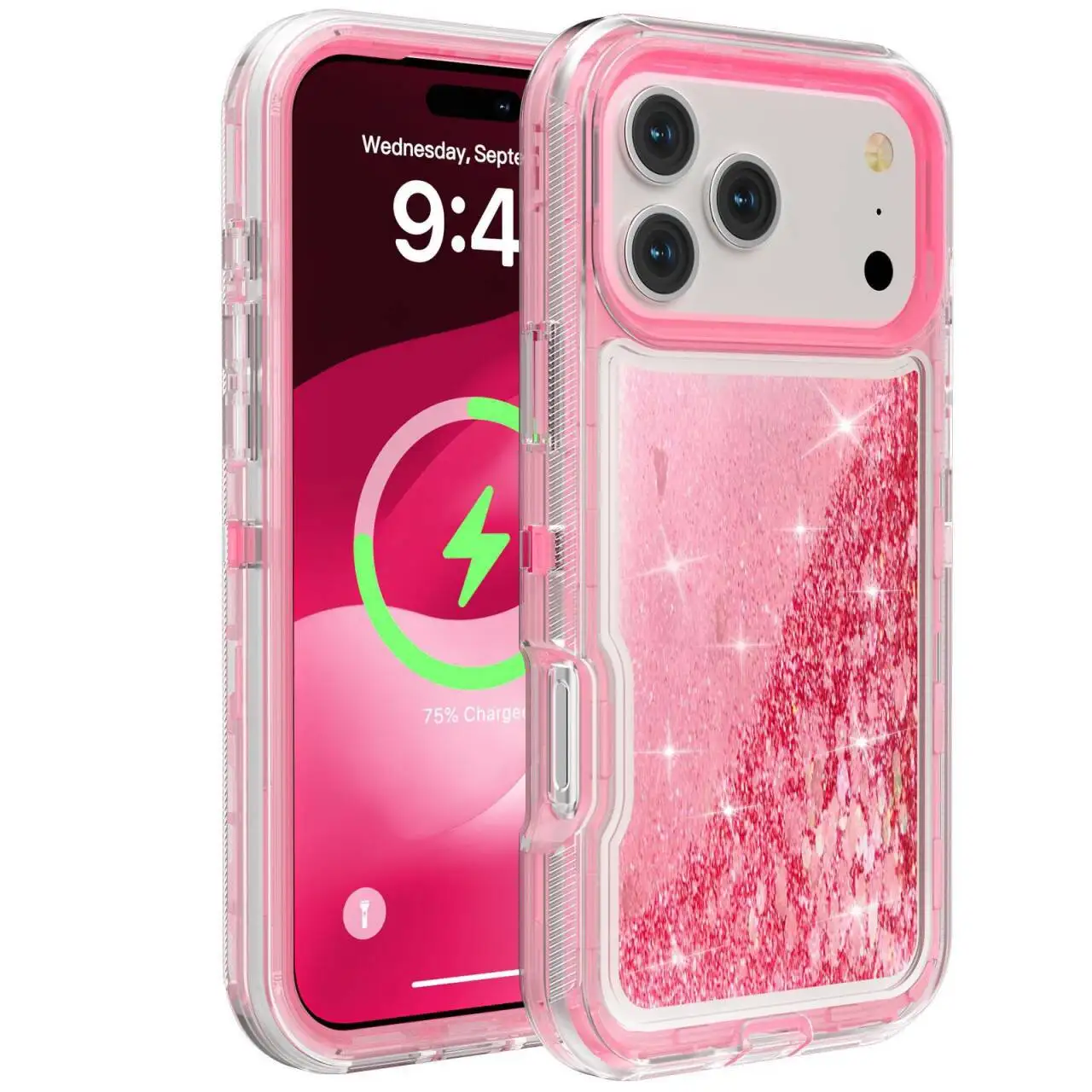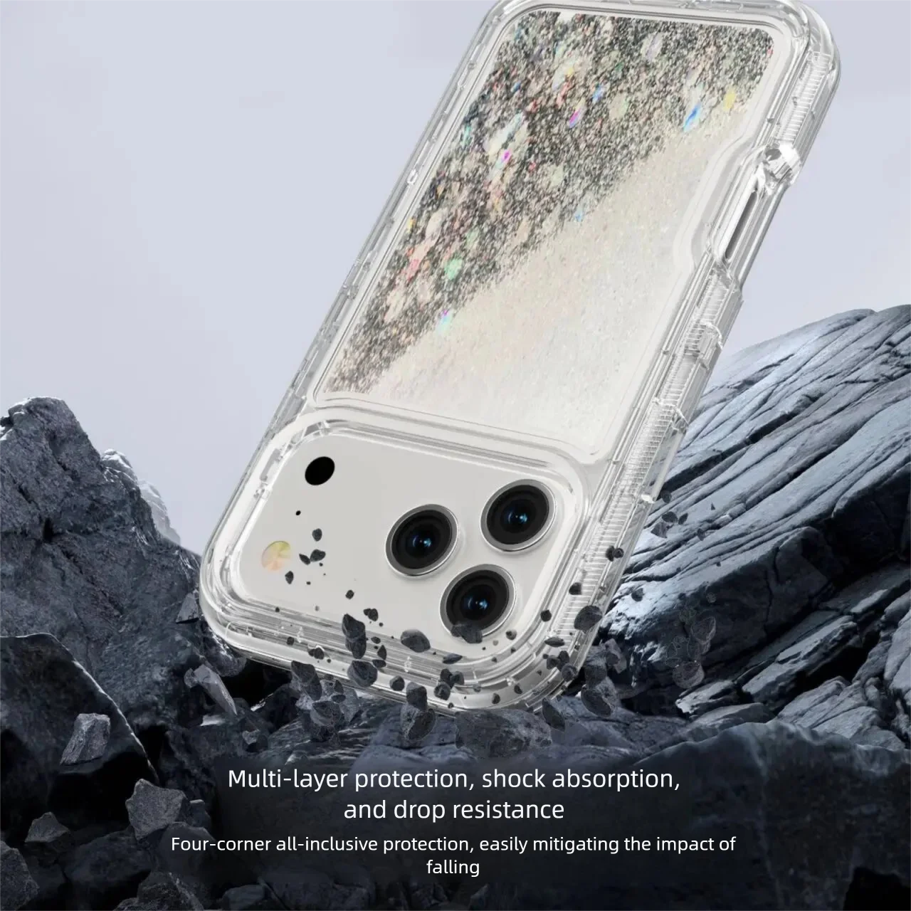 Funda de teléfono híbrida 3 en 1 con purpurina 3D dinámica a prueba de golpes para iPhone 16 15 14 13 12 MINI 11 17 Pro Max Air 16 15 14 Plus Cove