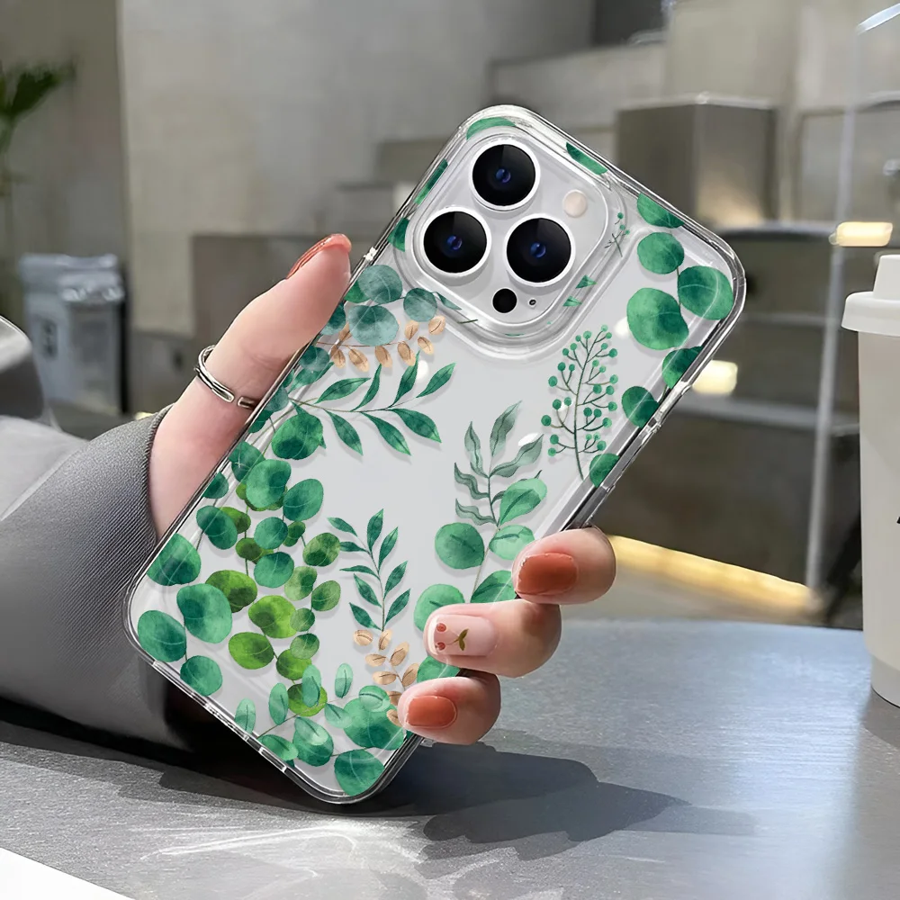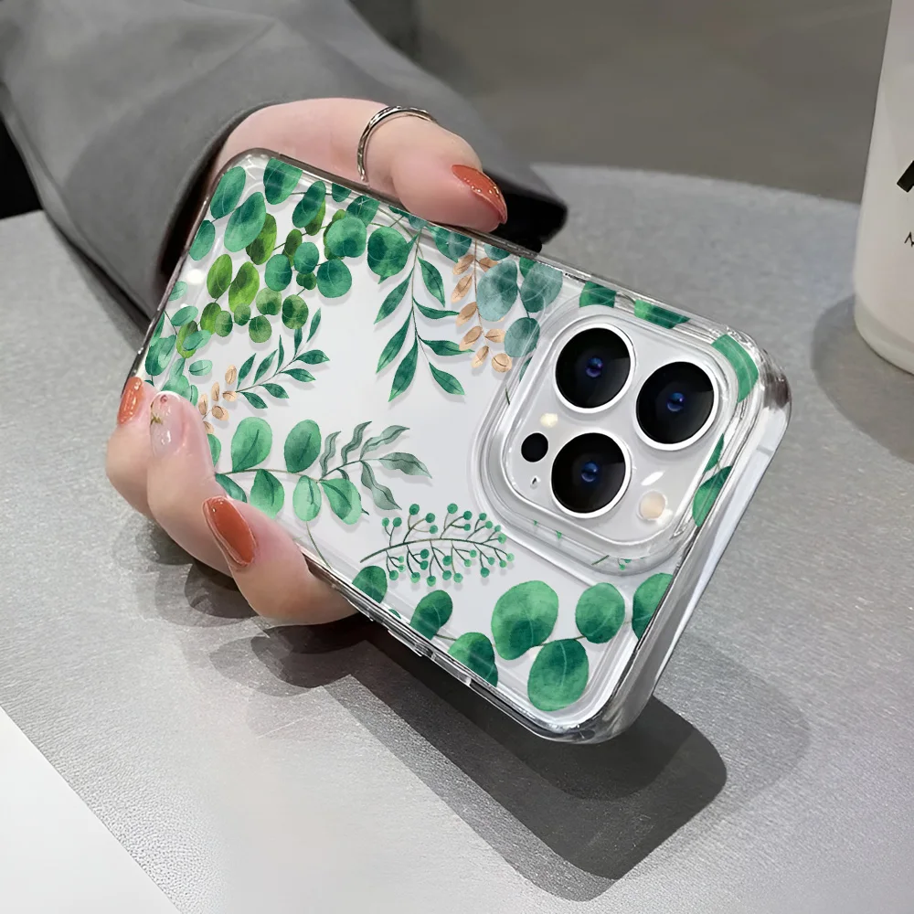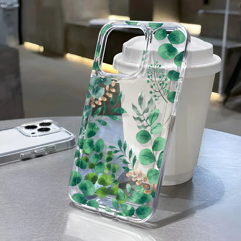 Funda de teléfono de hojas verdes de lujo para Apple iPhone 16 16E 15 14 13 12 11 Pro Max SE 2020 fundas transparentes a prueba de golpes - imagen 1