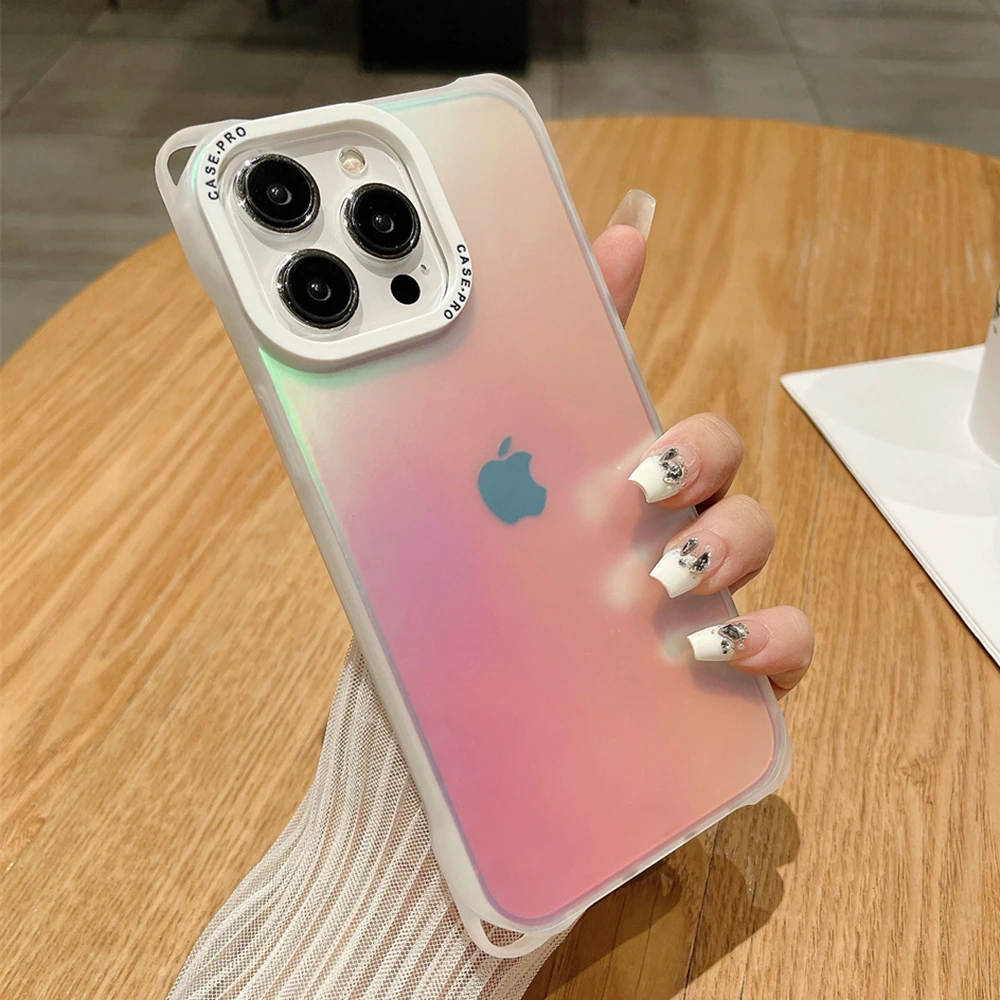 Comprar Funda de teléfono holográfica para iPhone 15 Pro Max 14 13 12 11 Pro Max, protector de lente de cámara, parachoques suave a prueba de golpes, cubierta de teléfono mate