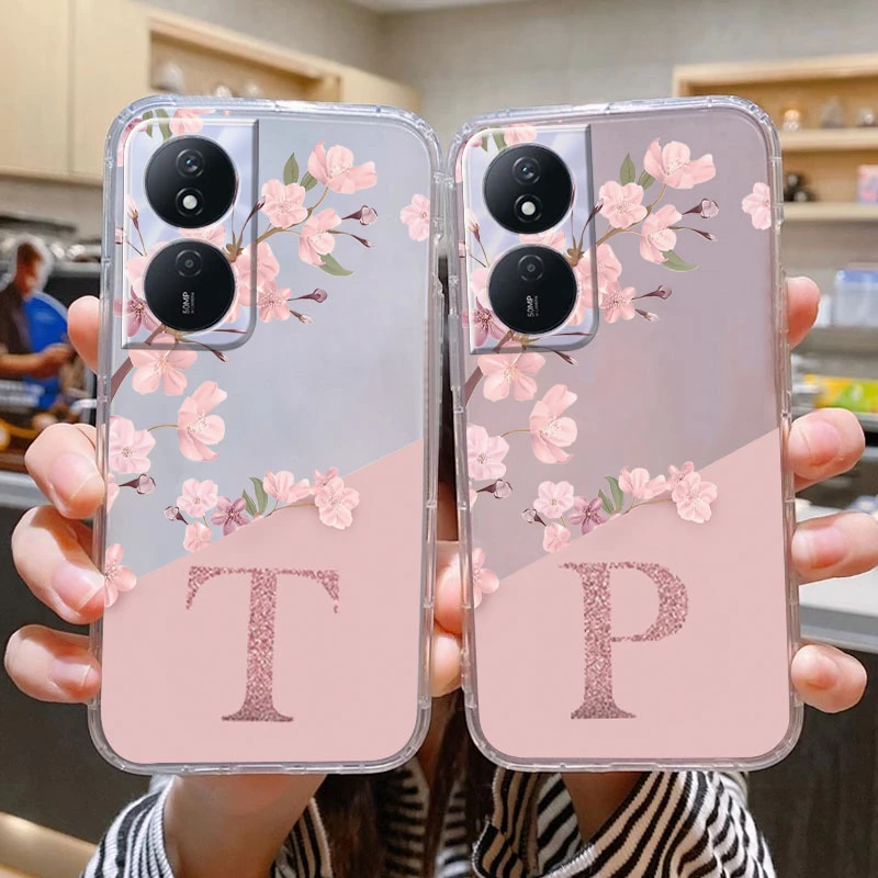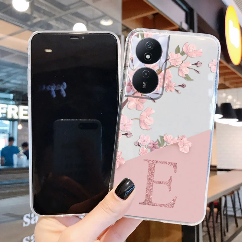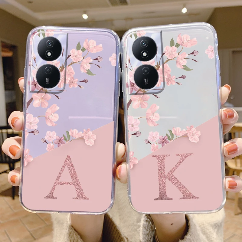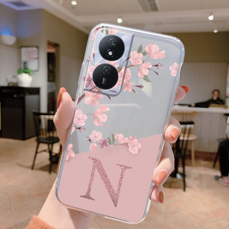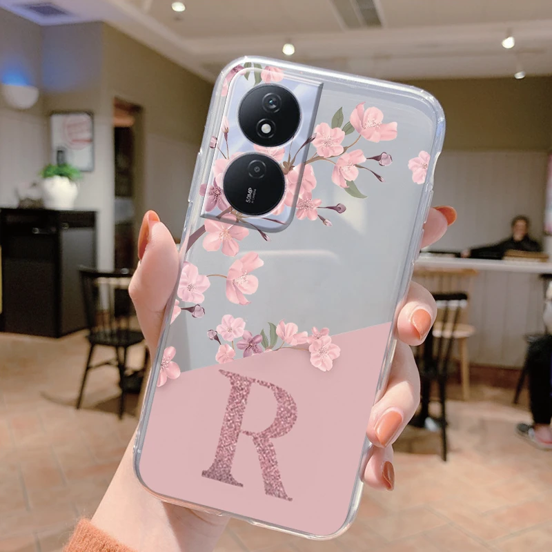 For Honor X7b 4G 5G Phone Case Cover Letter Pink Flowers Clear Soft TPU Fundas For HonorX7B X7 B Bumper Shell Transparent Capa