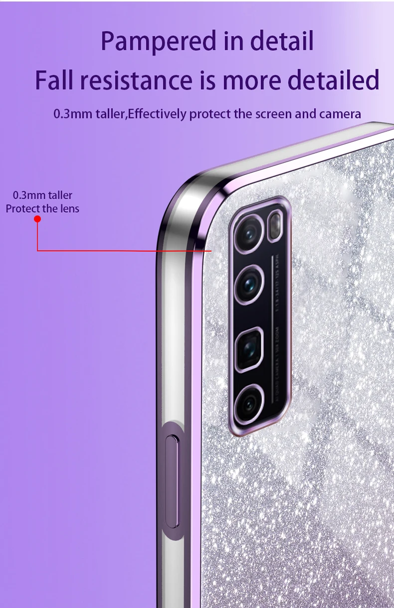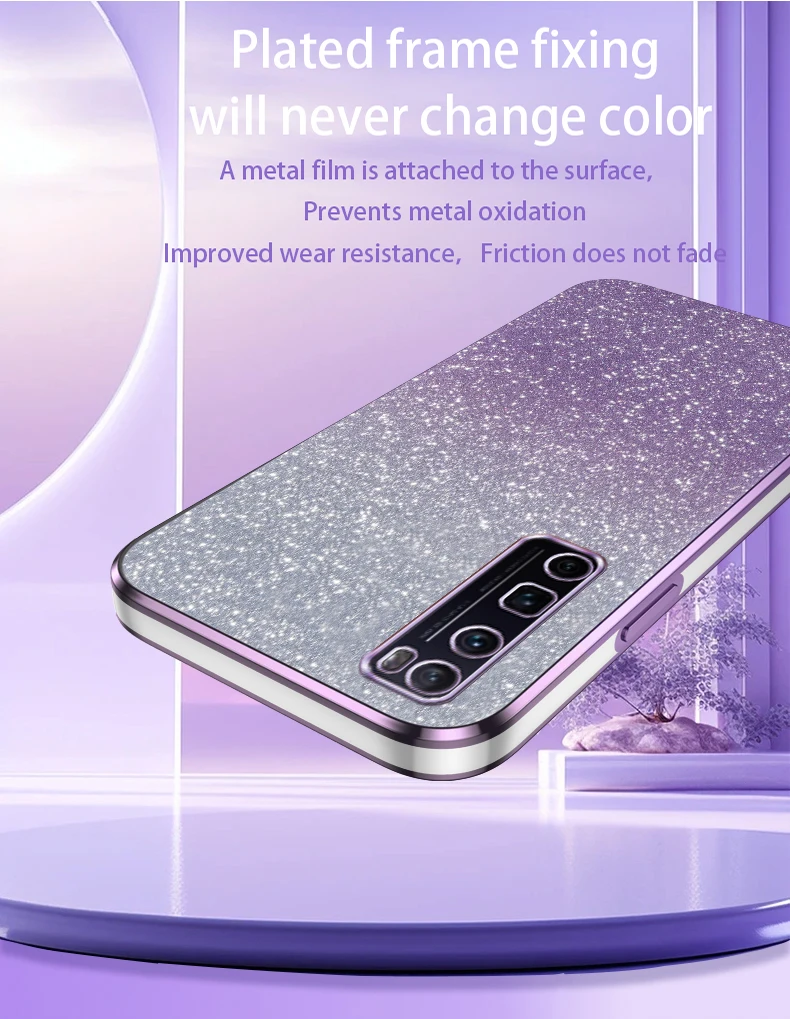 Comprar Funda de teléfono para Huawei nova 7 SE, carcasa trasera de silicona chapada en purpurina degradada de lujo, nova 7 Pro