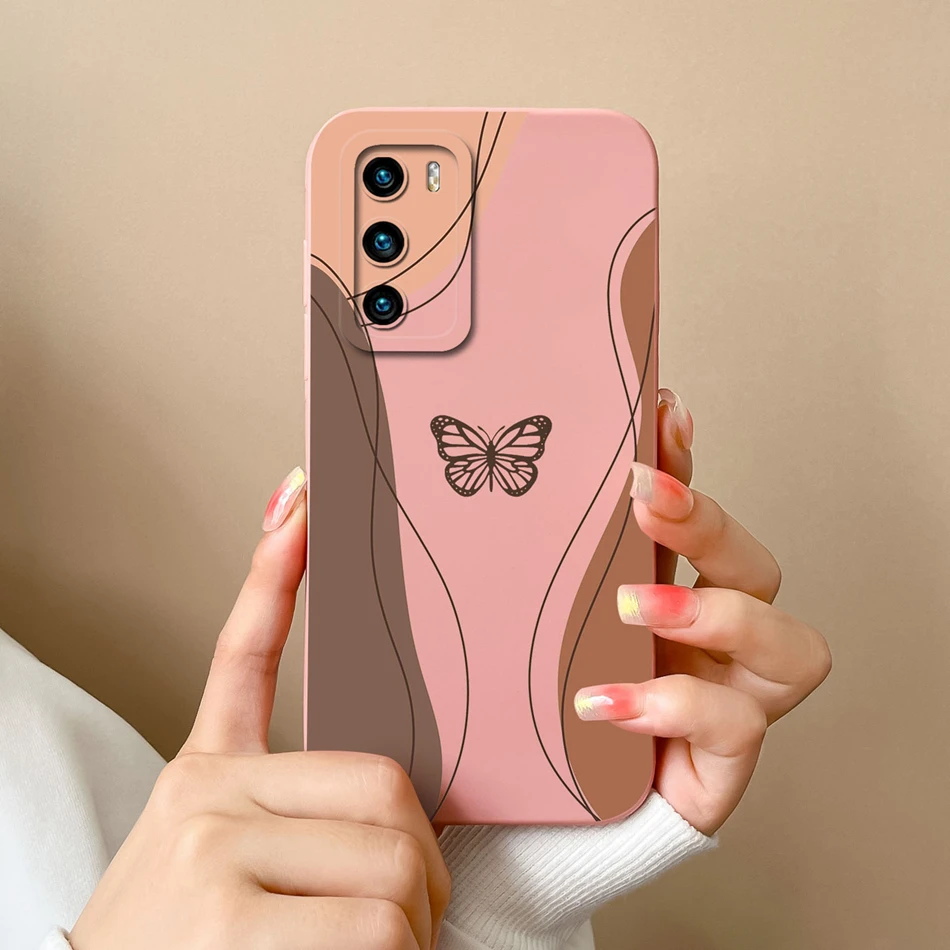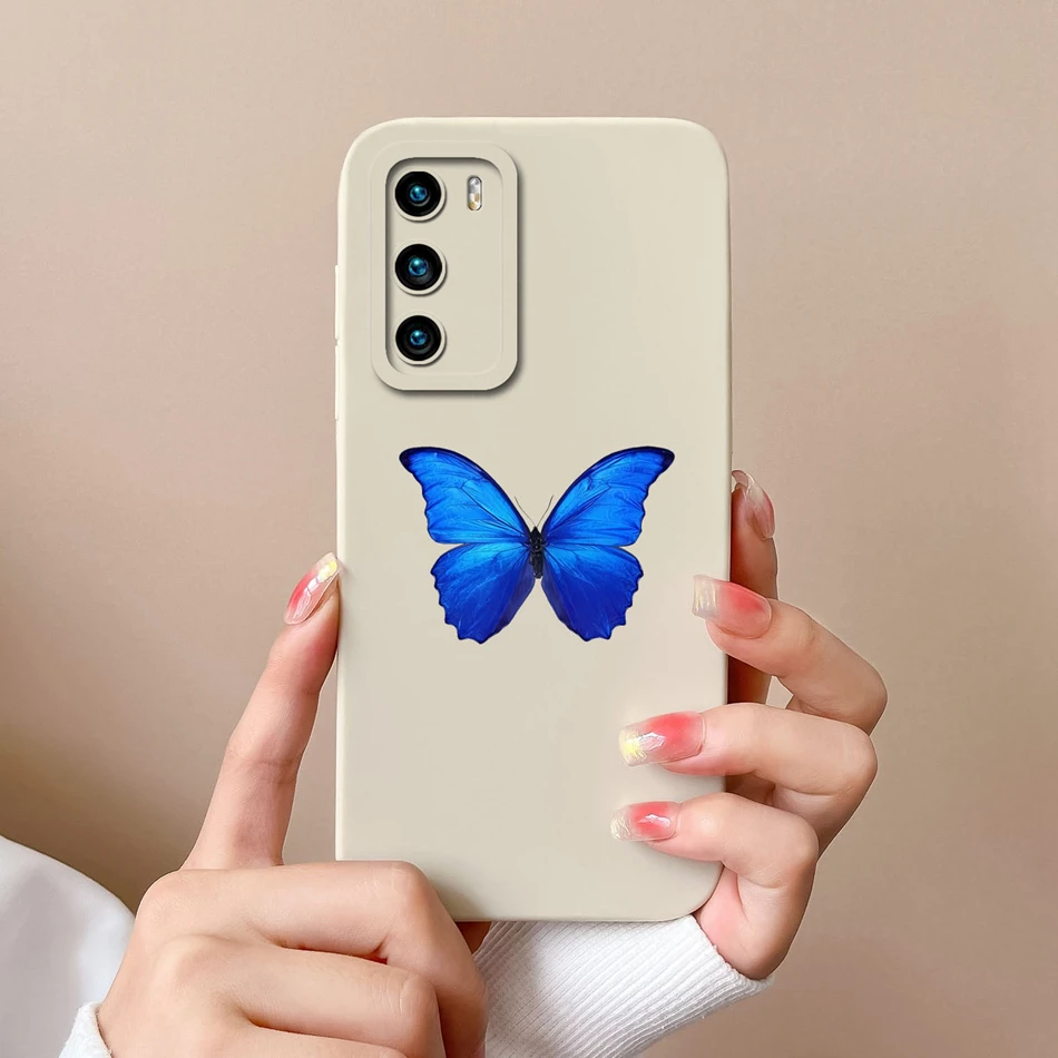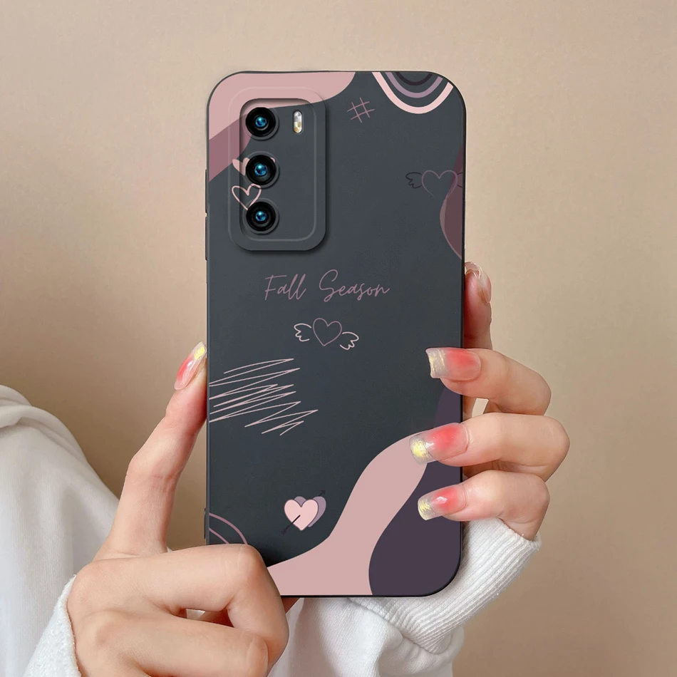 Comprar Funda de teléfono para Huawei P40 Pro, cubierta trasera de protección de cámara de silicona líquida suave, a la moda, parachoques