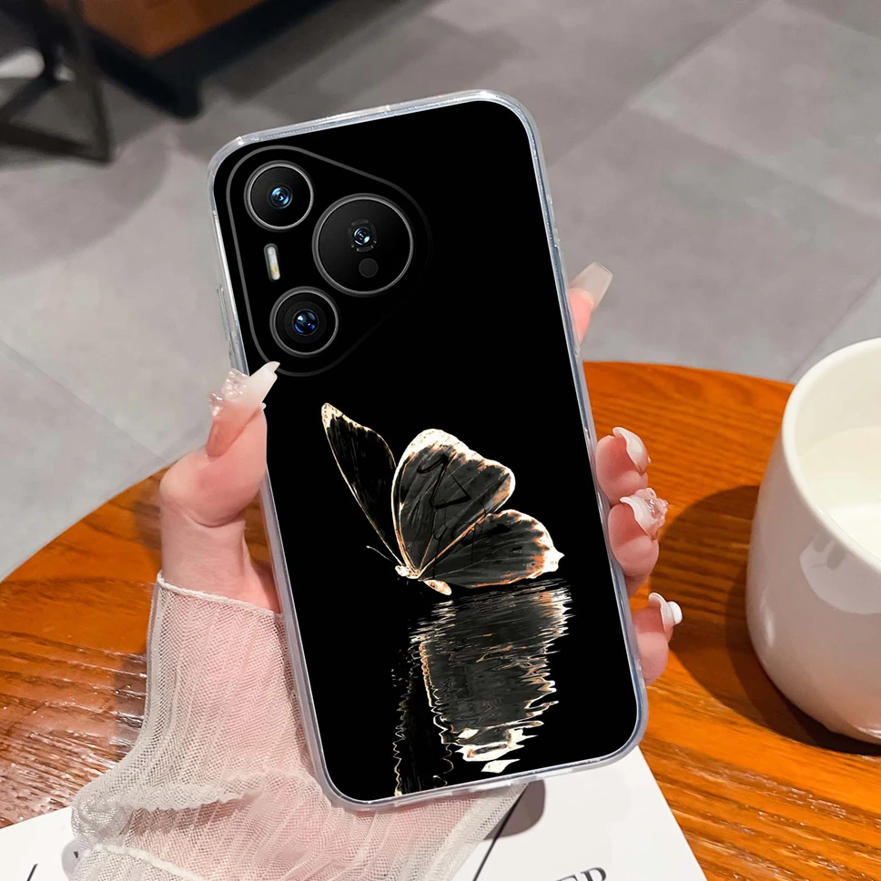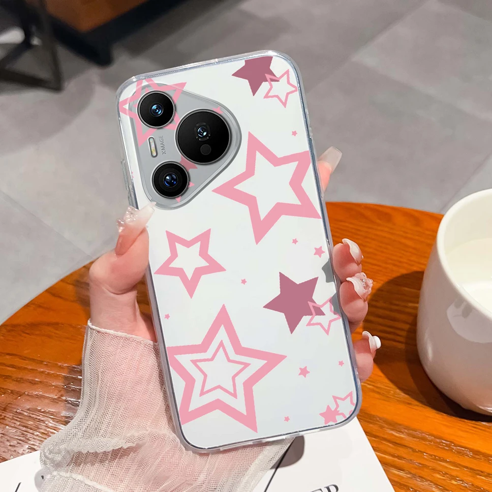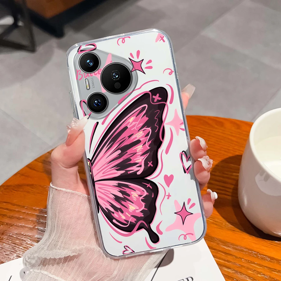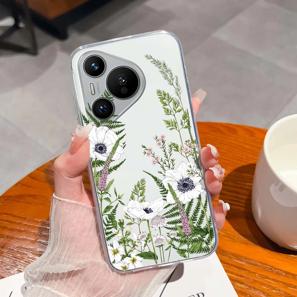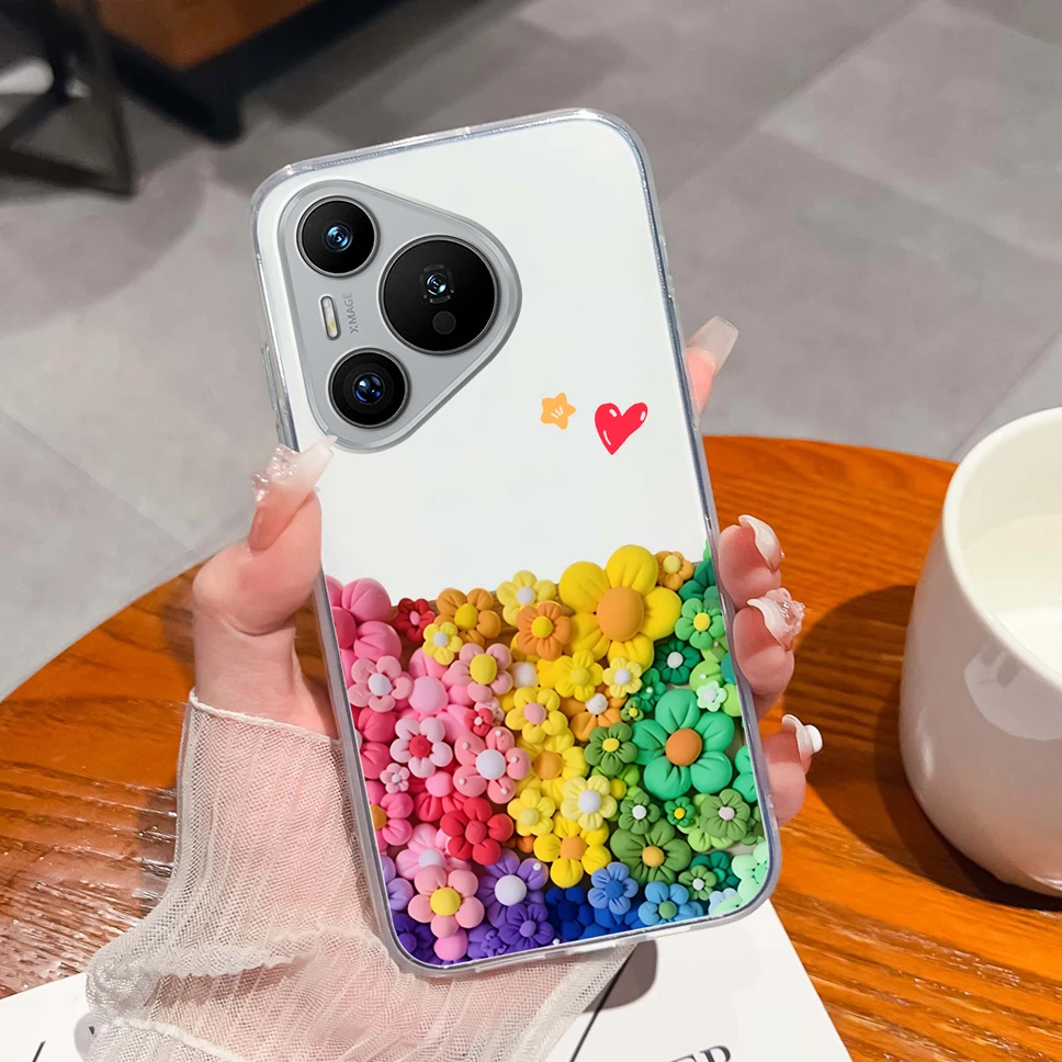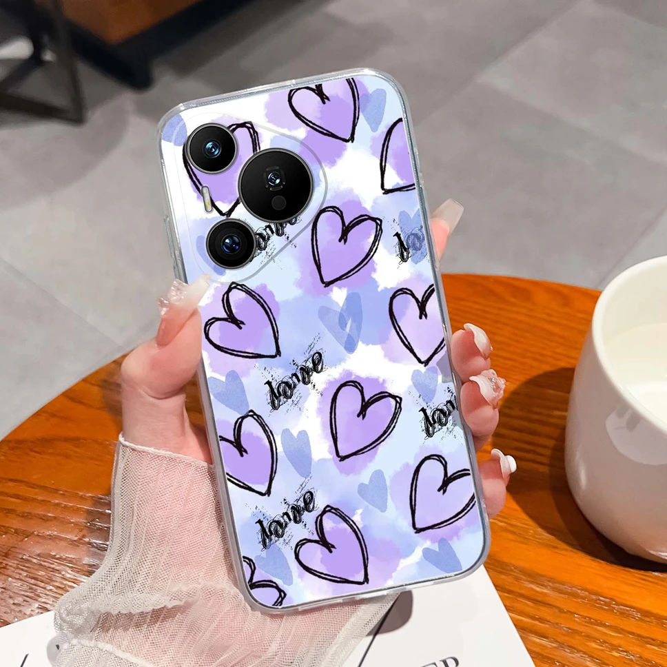 Funda de teléfono para Huawei Pura 70 Pro 70, Ultra bonita, flores, corazón de amor, transparente, suave, TPU, silicona, a prueba de golpes, Fundas traseras