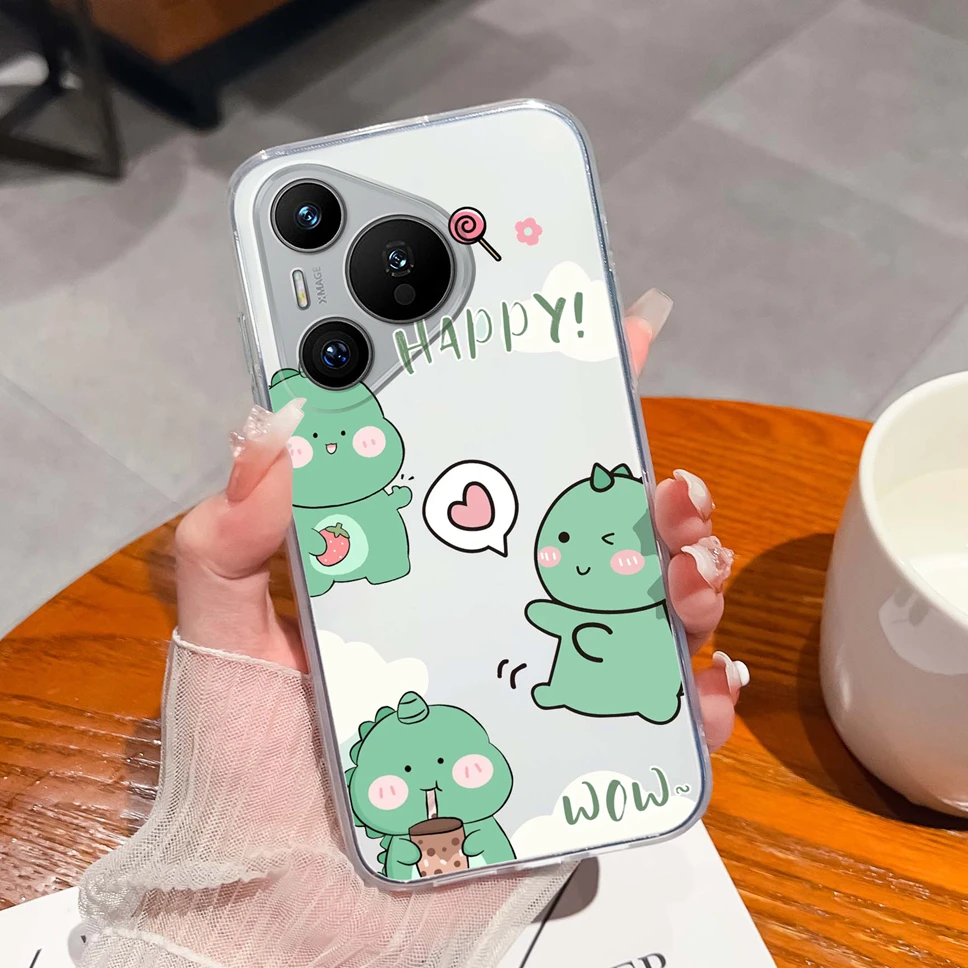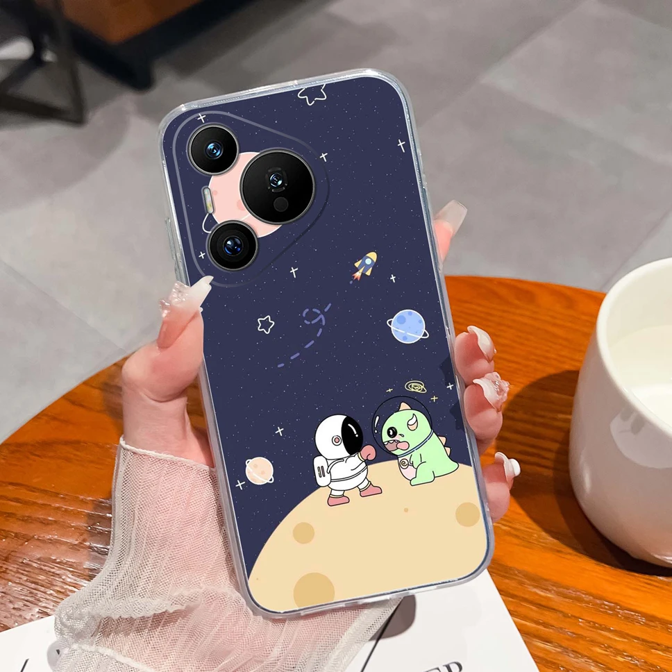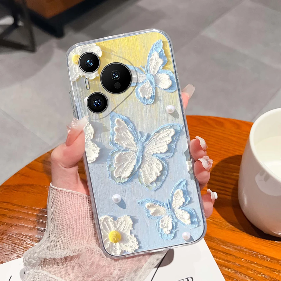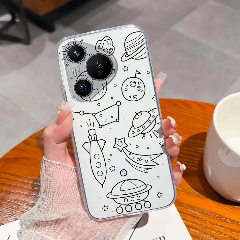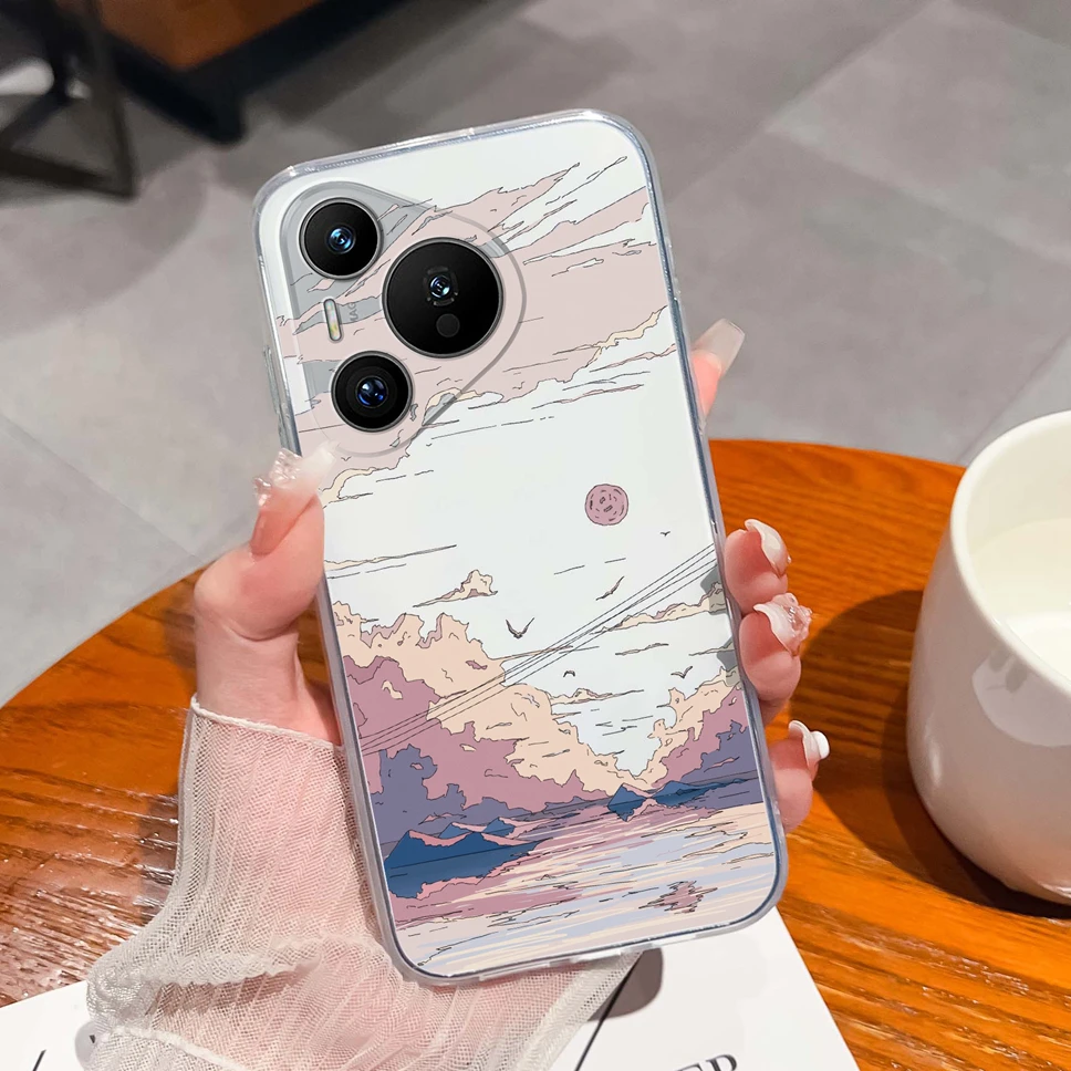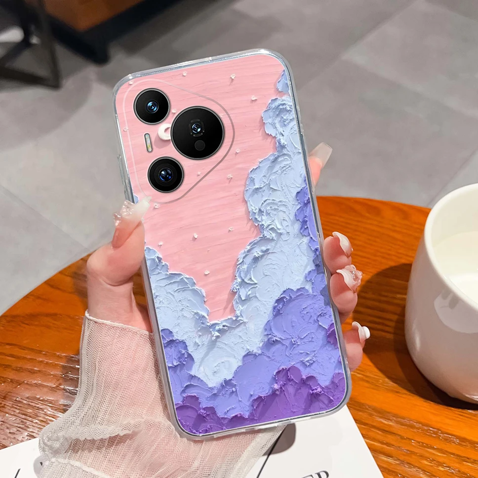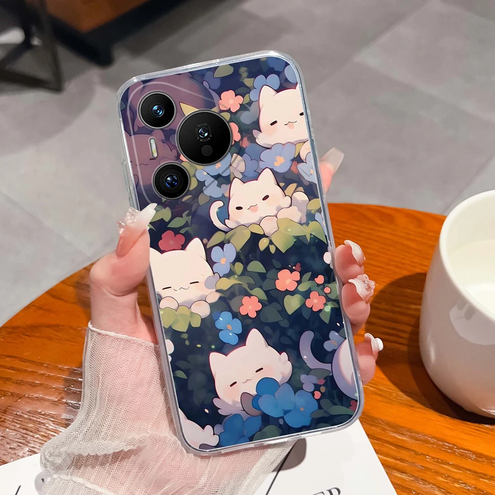 Funda de teléfono para Huawei Pura 70 Pro 70, Ultra bonita, flores, corazón de amor, transparente, suave, TPU, silicona, a prueba de golpes, Fundas traseras
