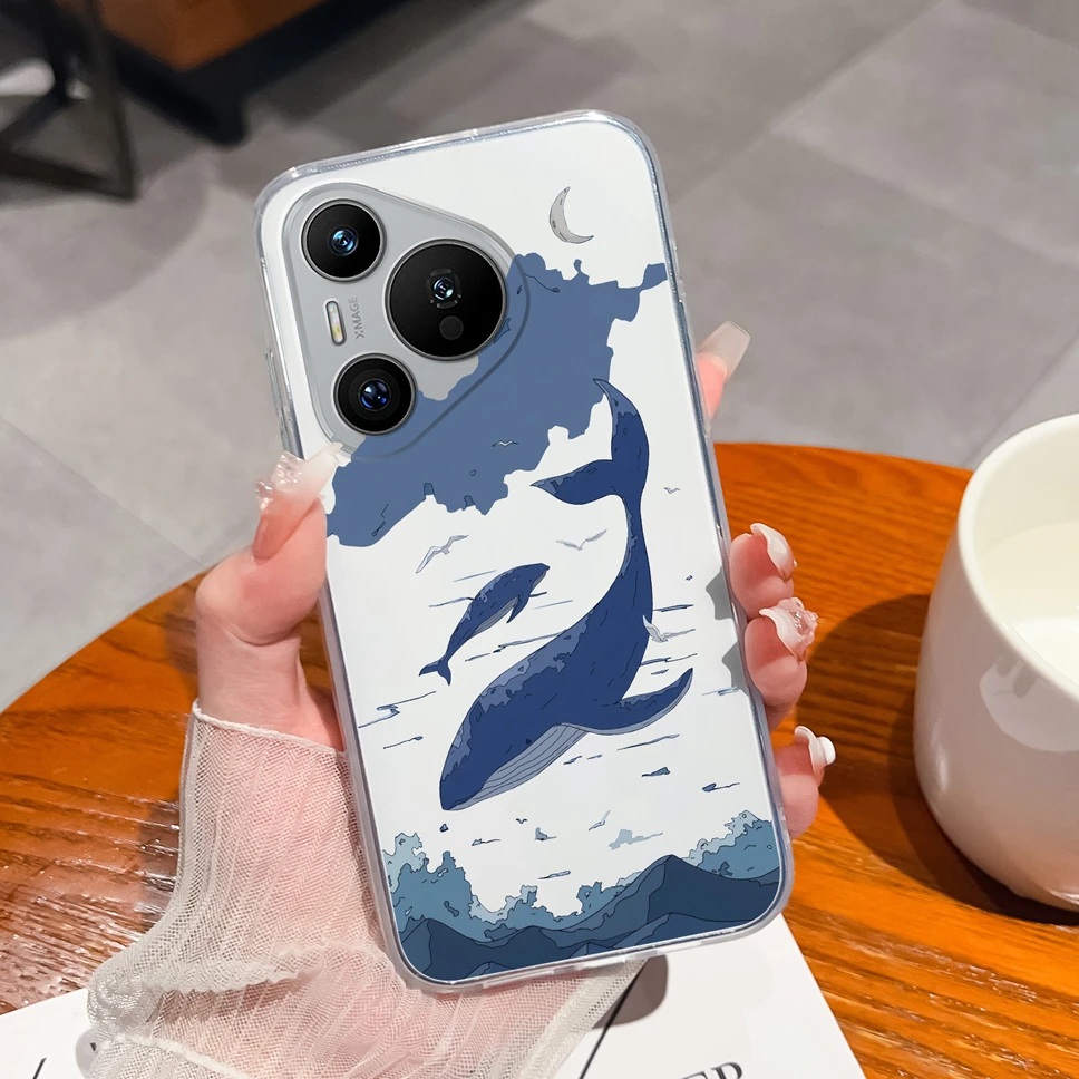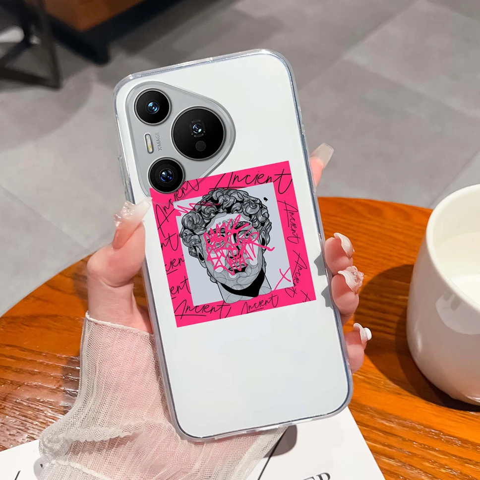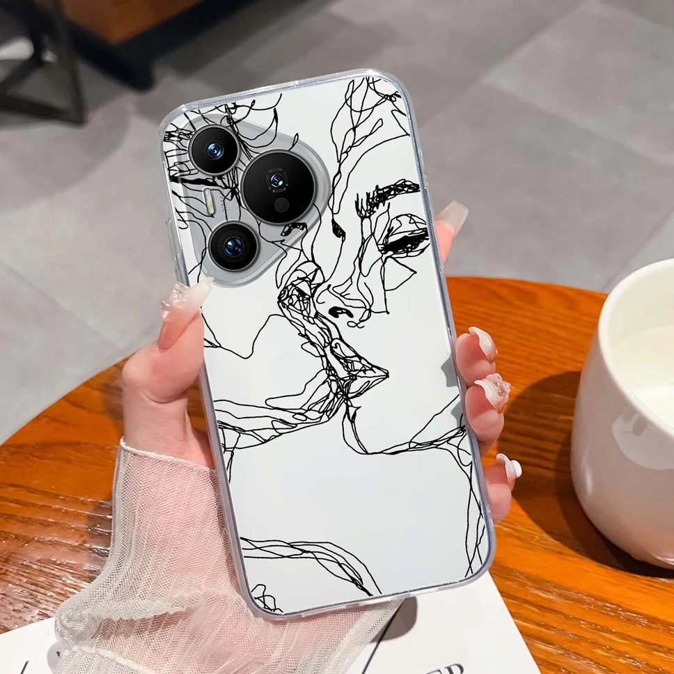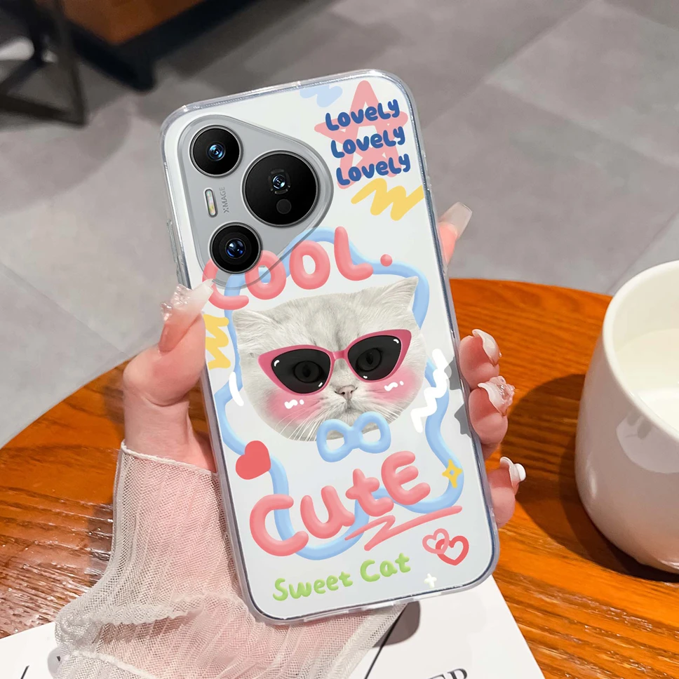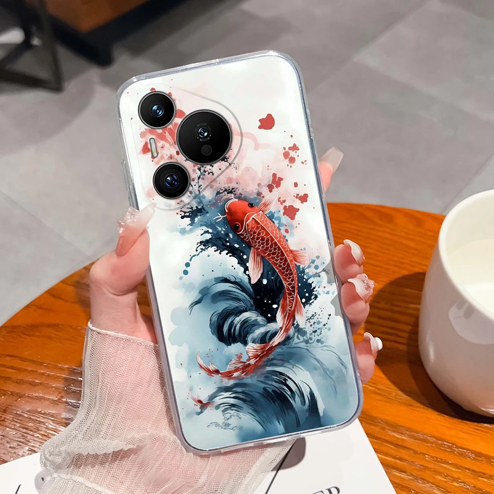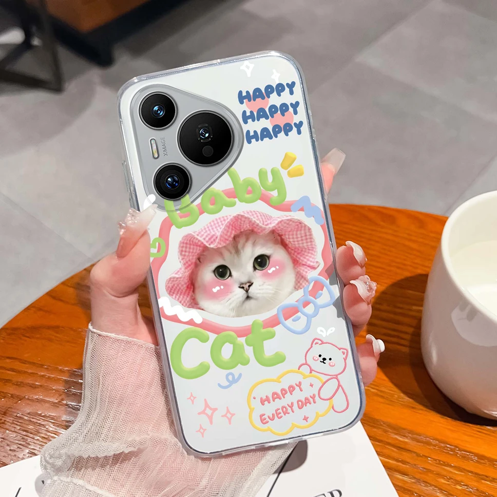 Funda de teléfono para Huawei Pura 70 Pro 70, Ultra bonita, flores, corazón de amor, transparente, suave, TPU, silicona, a prueba de golpes, Fundas traseras