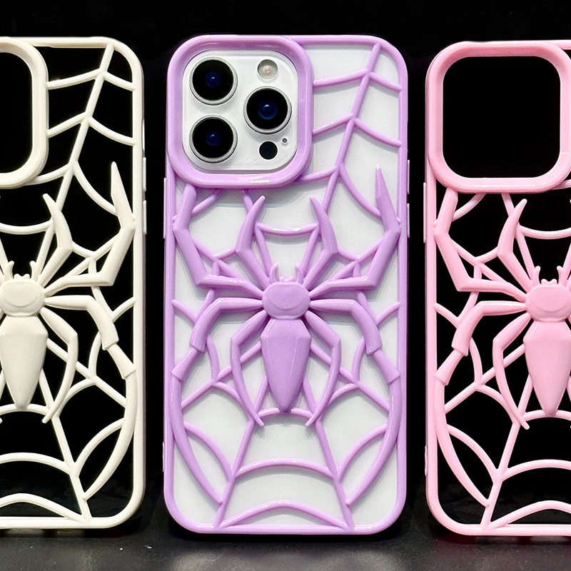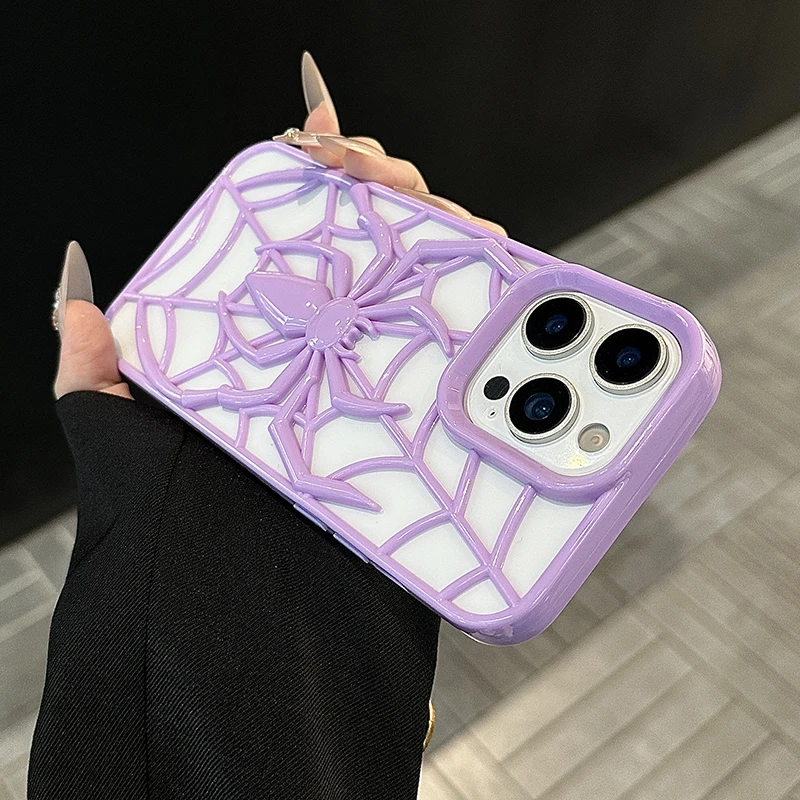 Funda de teléfono hueca con diseño de araña púrpura de dibujos animados para iPhone 16e 15 Plus 14 13 12 11 16 Pro Max, funda de silicona para disipación de calor