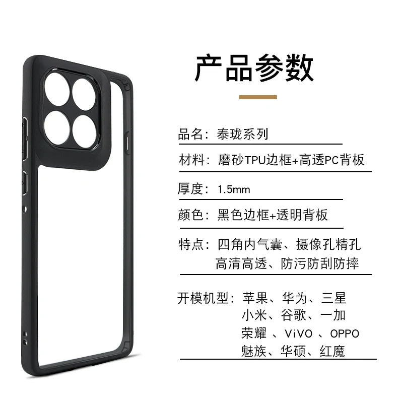 *Material*: Frosted TPU frame & high-transparency PC backplane