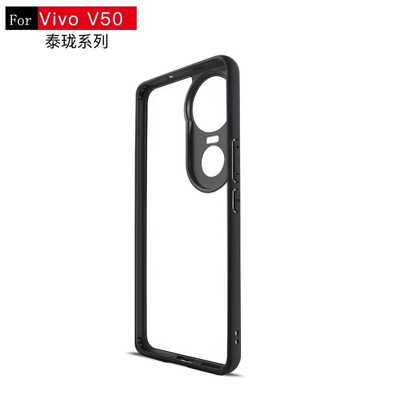 Funda de teléfono hueca con borde negro para vivo V50, Funda trasera transparente a prueba de golpes para vivo V50
