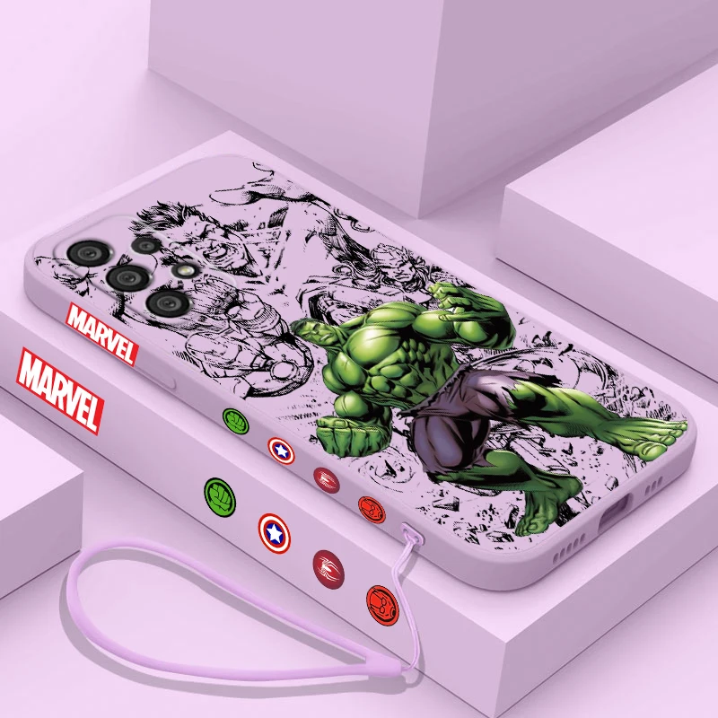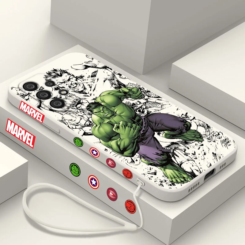 Funda de teléfono de Hulk de Los Vengadores para Samsung, A55, A53, A33, A52, A32, A71, A51, A21S, A35, A25, 5G, cuerda líquida izquierda