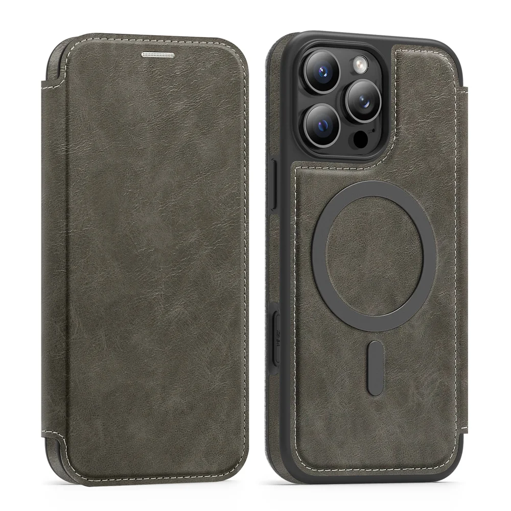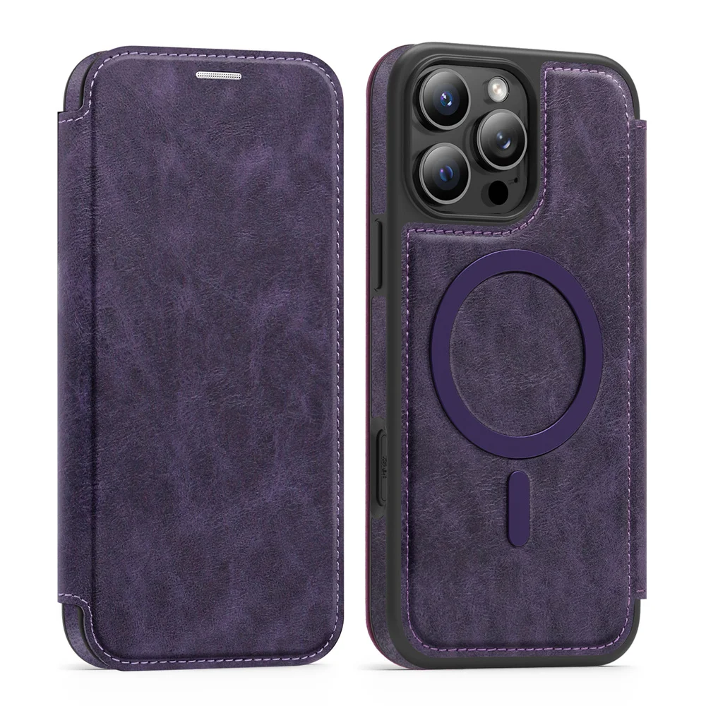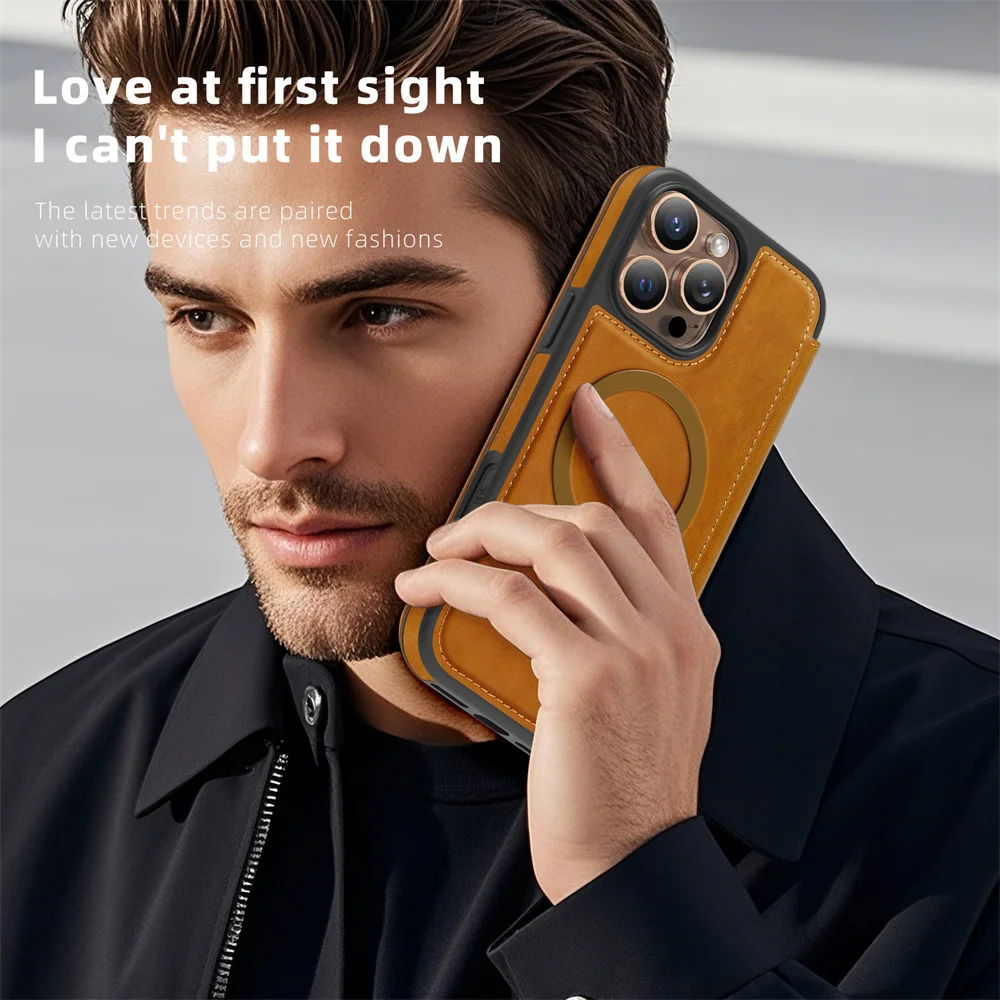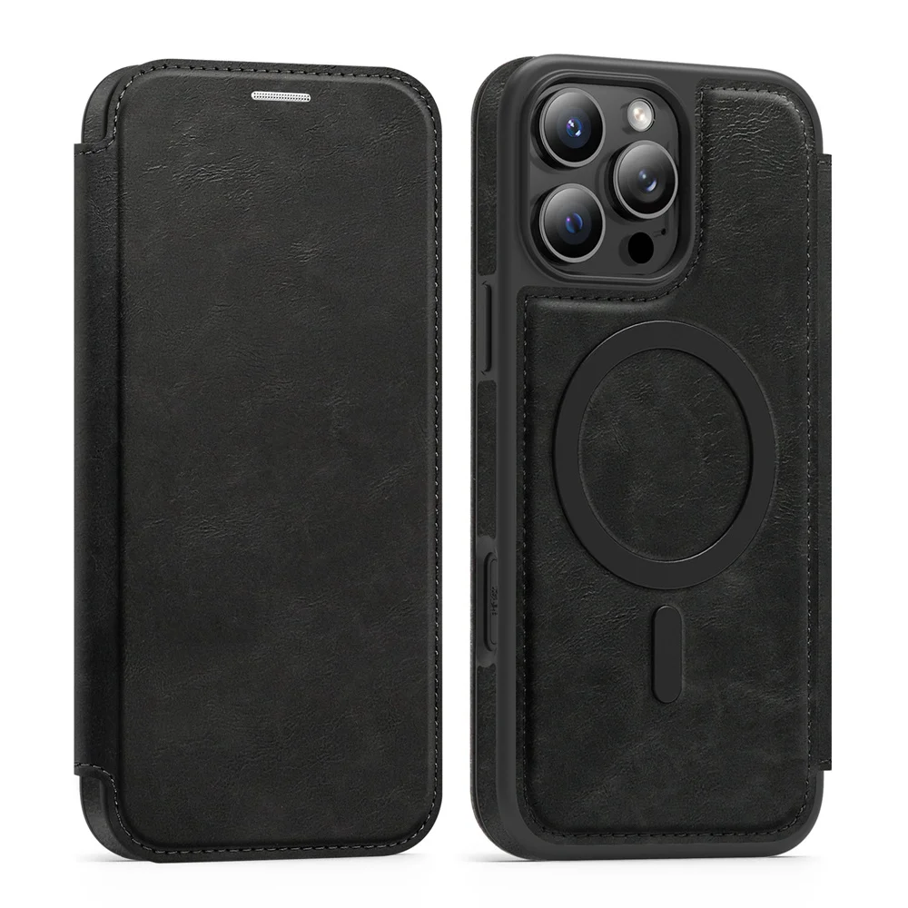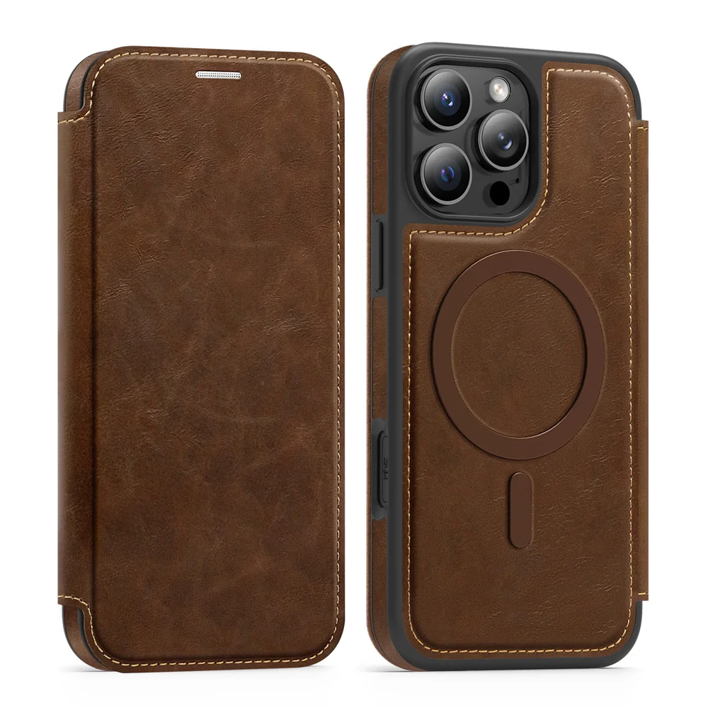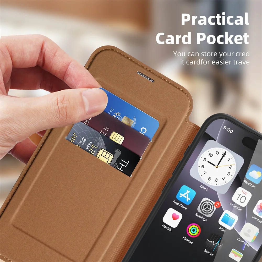 Funda de teléfono magnética de lujo con tapa de cuero para iPhone 16E 15 16 17 Pro Max 14 13 12 11 ranura para tarjetas