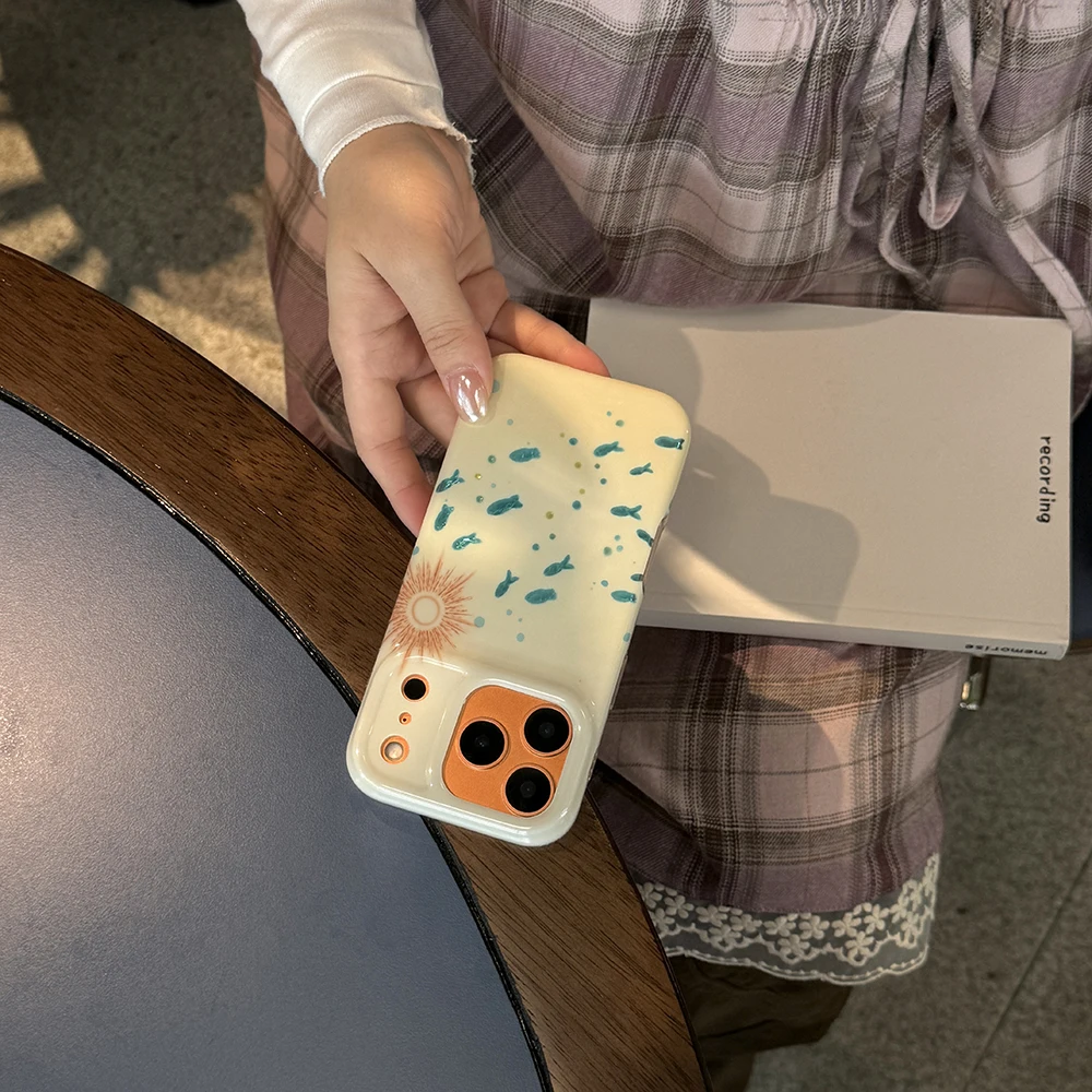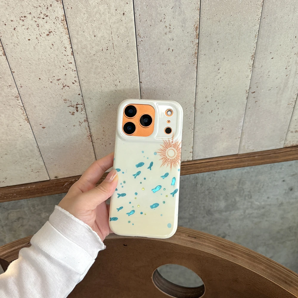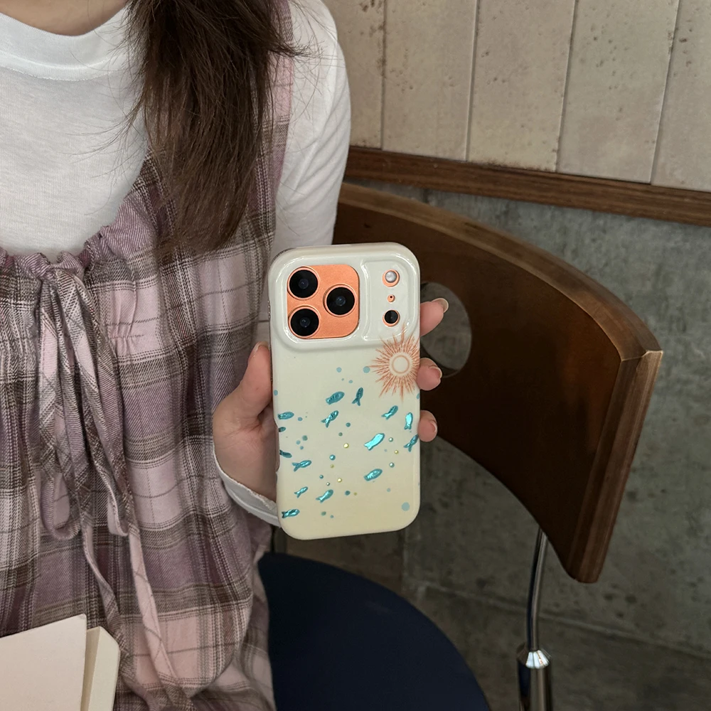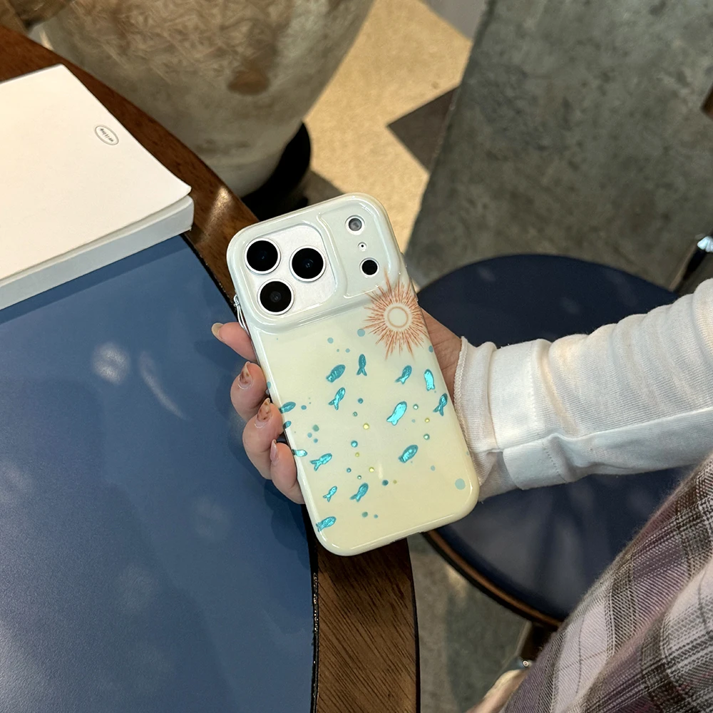 Funda bonita IMD con forma de pez azul brillante para IPhone 15 16 Pro Max 17 Promax 14 Pro Max, funda suave a prueba de golpes para peces