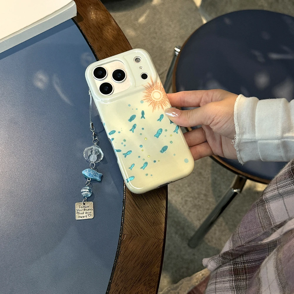 Funda bonita IMD con forma de pez azul brillante para IPhone 15 16 Pro Max 17 Promax 14 Pro Max, funda suave a prueba de golpes para peces