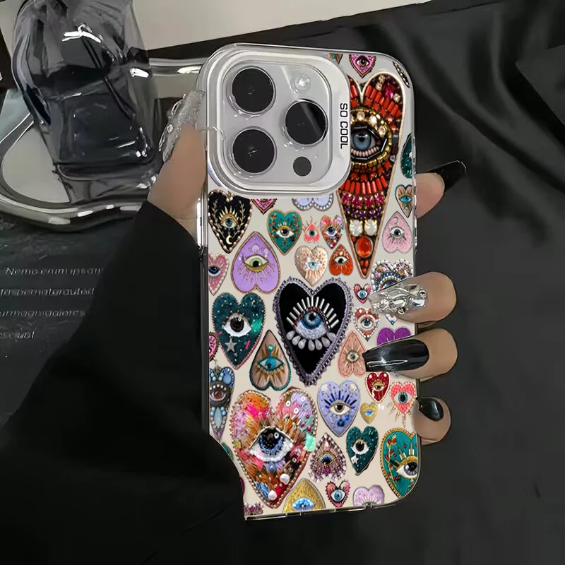 Funda de teléfono IMD con diseño de corazón brillante de mal de ojo para Xiaomi Redmi 14C 13 Redmi Note 14 13 12 11 10 Pro Plus 5G 12S