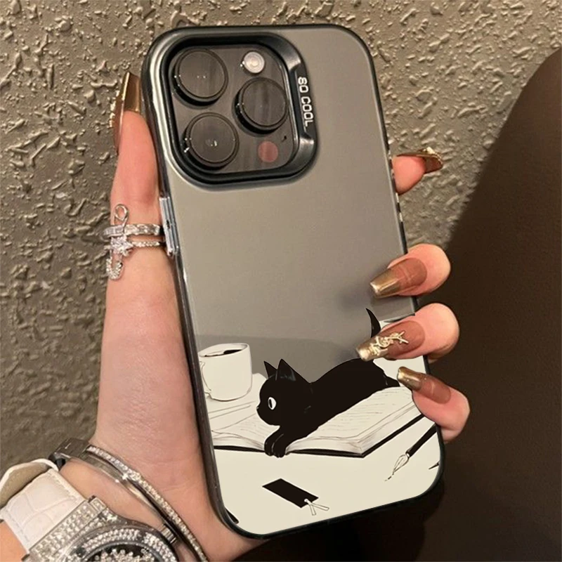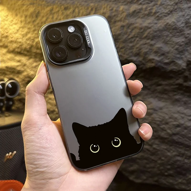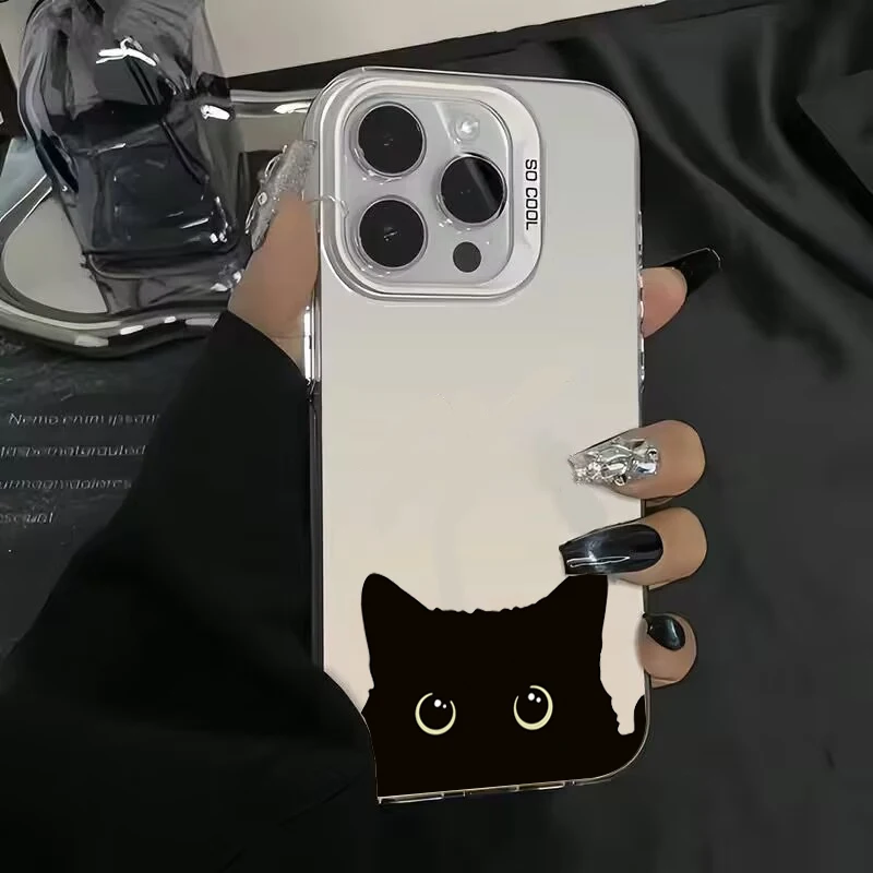 Cute Black Cat Pattern Electroplate IMD Phone Case For Samsung Galaxy S25 S24 S23 S22 S21 Ultra Plus A13 A14 A23 A15 A16 Cover