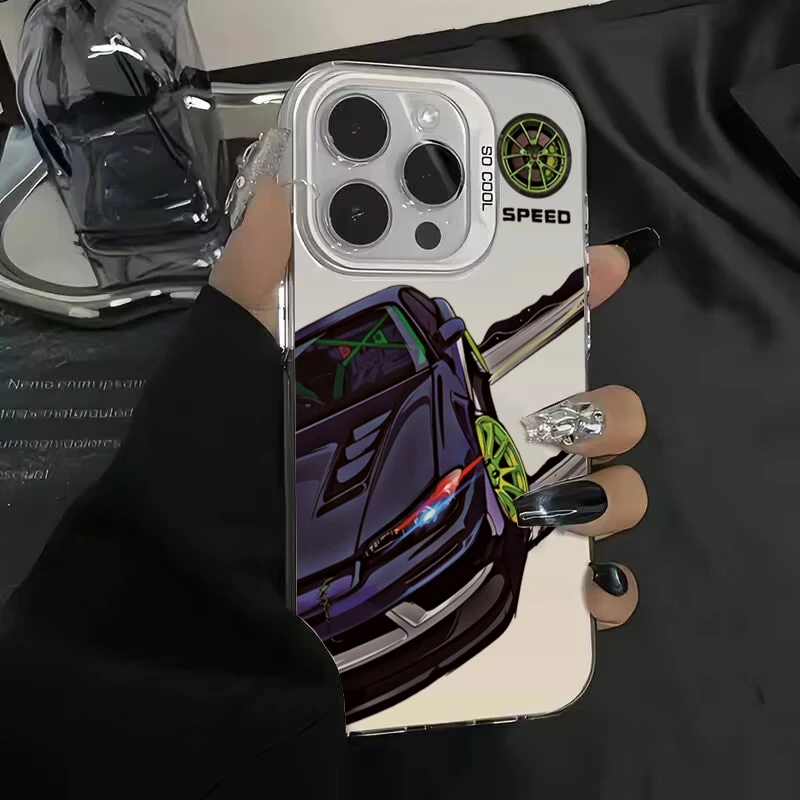 Fashionable Car Print Electroplate IMD Phone Case For Redmi 12 13C For Xiaomi Redmi Note 13 12 11 10 Pro Plus 12S 11S Hard Cover