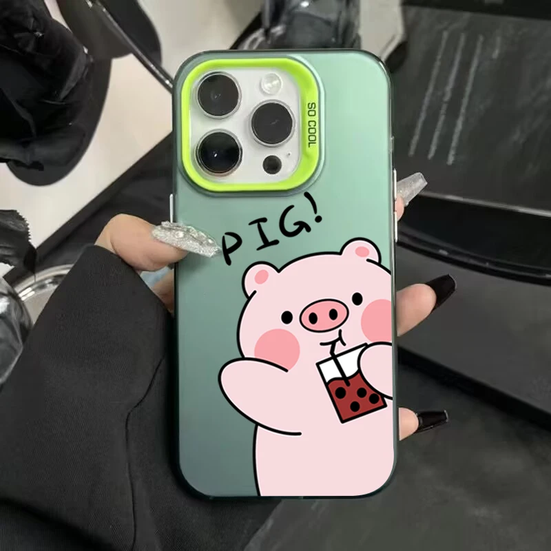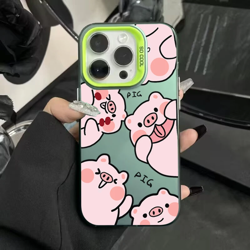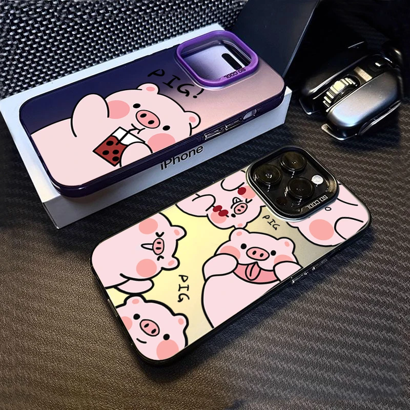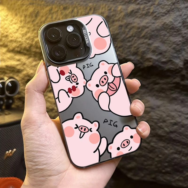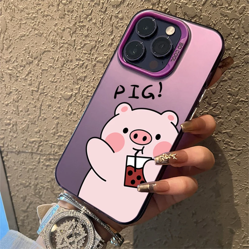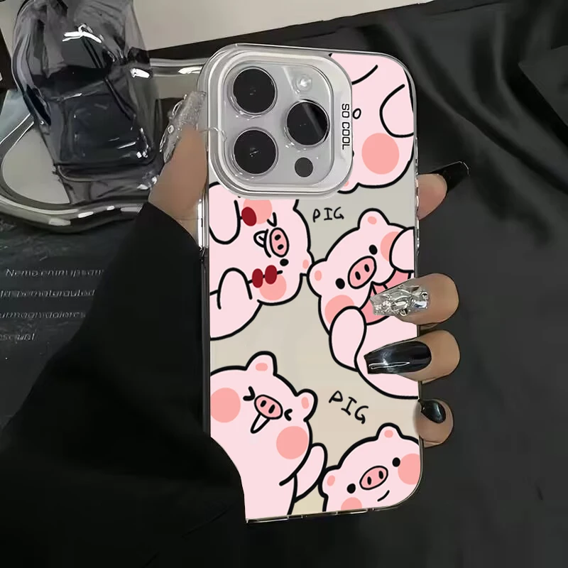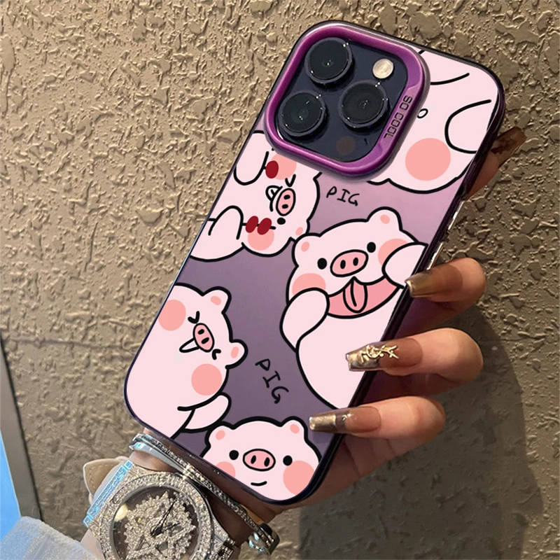 Funda de teléfono IMD plateada electrochapada de cerdo de dibujos animados para iPhone 15 Pro Max 16 14 13 12 11 15 7 8 Plus X XS XR cubierta trasera a prueba de golpes