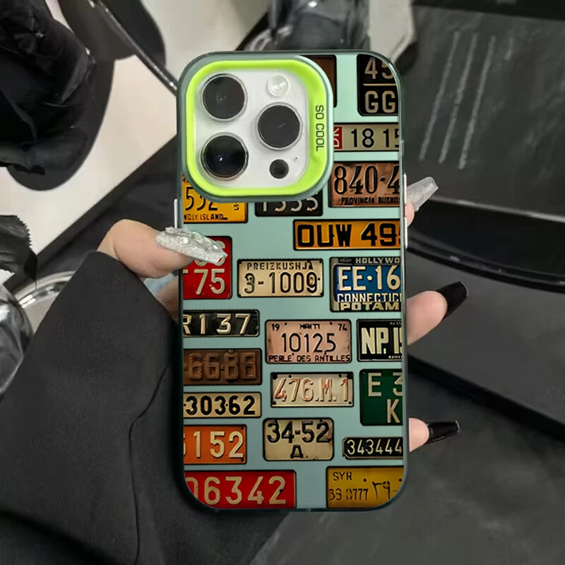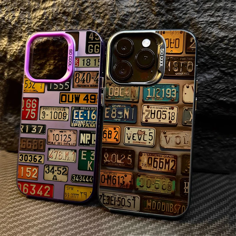 Funda de teléfono IMD plateada galvanizada con patrón de matrícula de coche Vintage para iPhone 11 12 13 14 15 16 Pro Max 7 8 Plus X XS XR