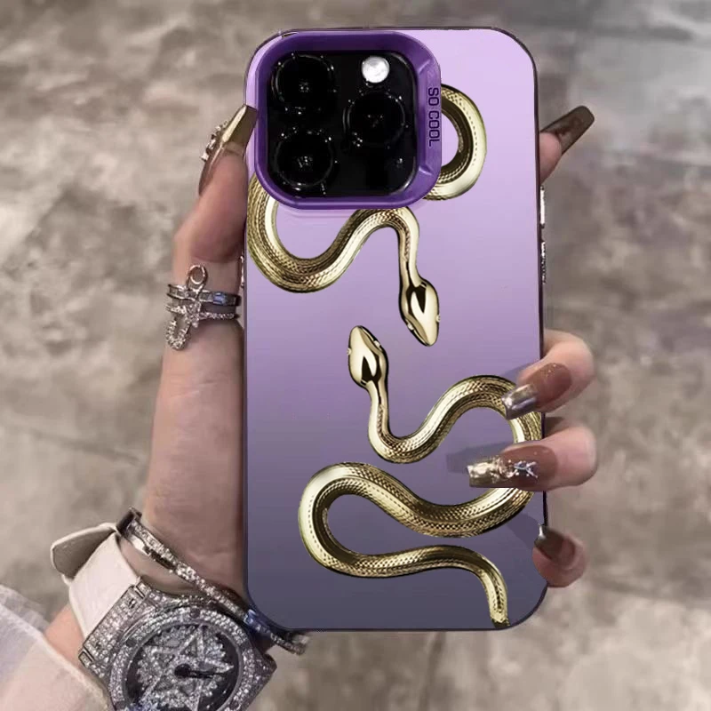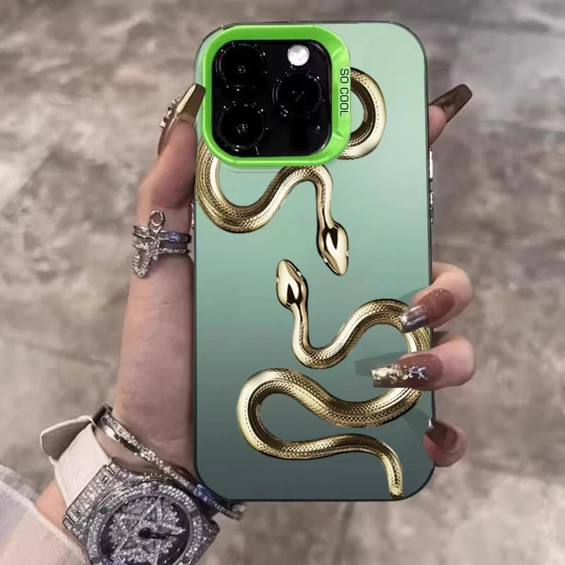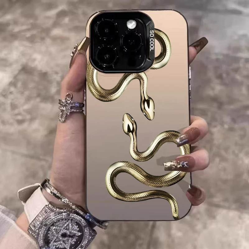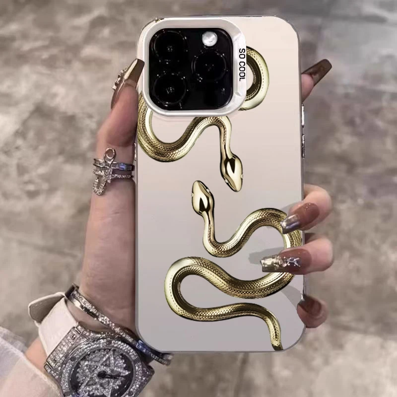 Funda de teléfono IMD plateada electrochapada de serpiente dorada de lujo para iPhone 17 16 15 14 13 12 11 Pro Max 17 Air 16E 7 8 Plus X XS XR