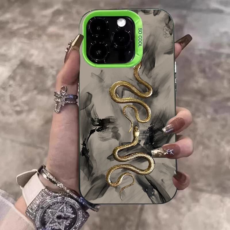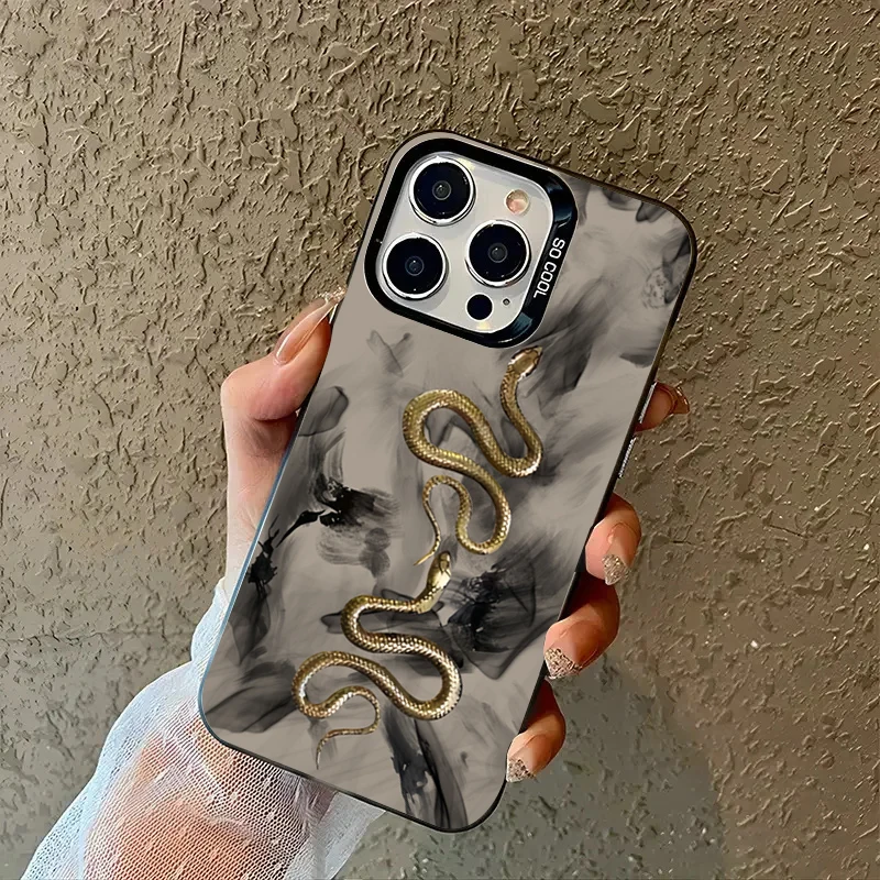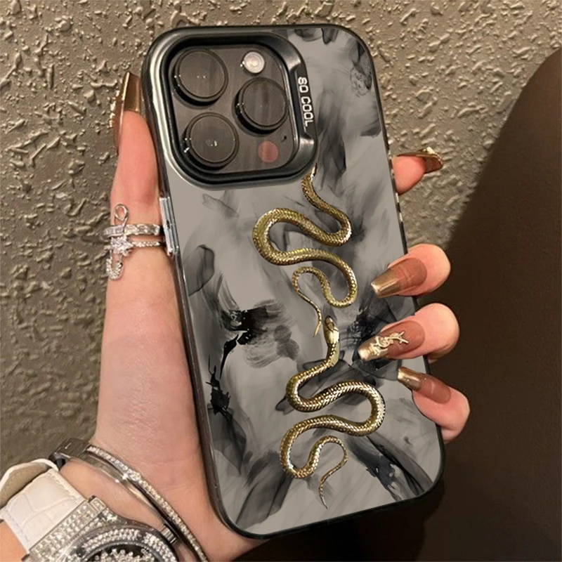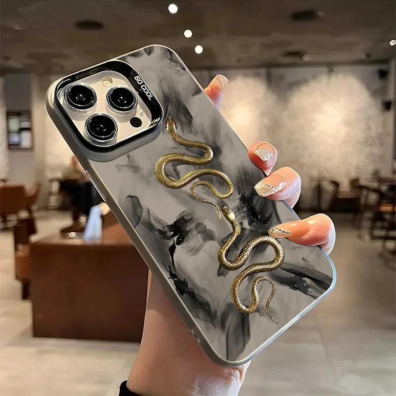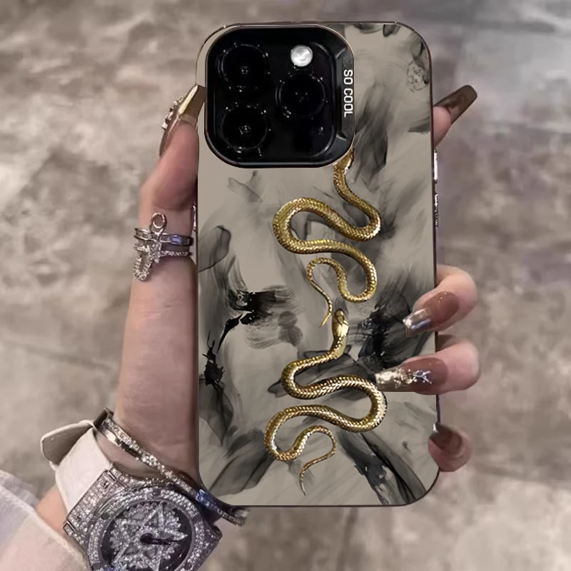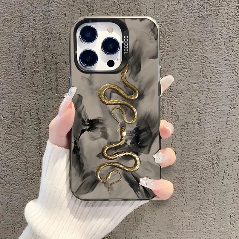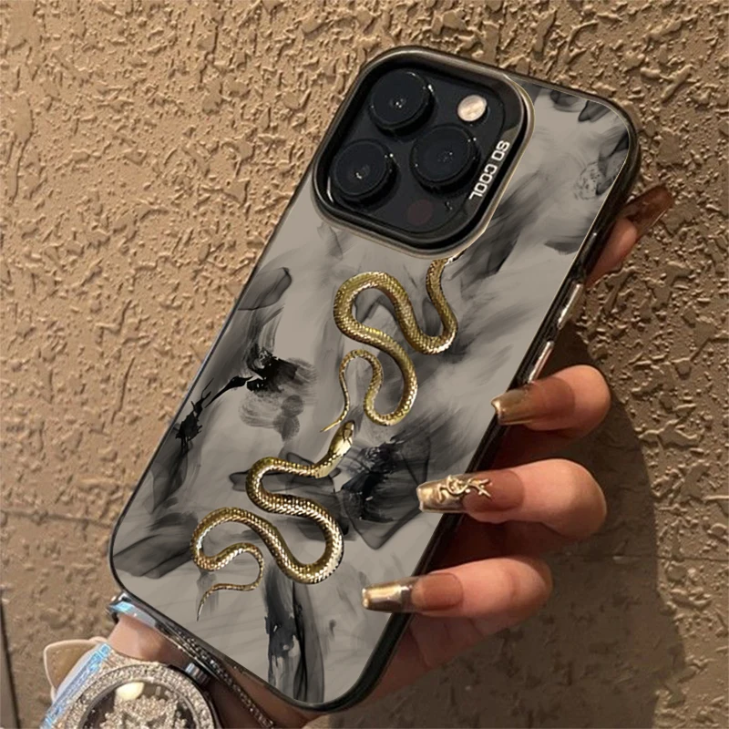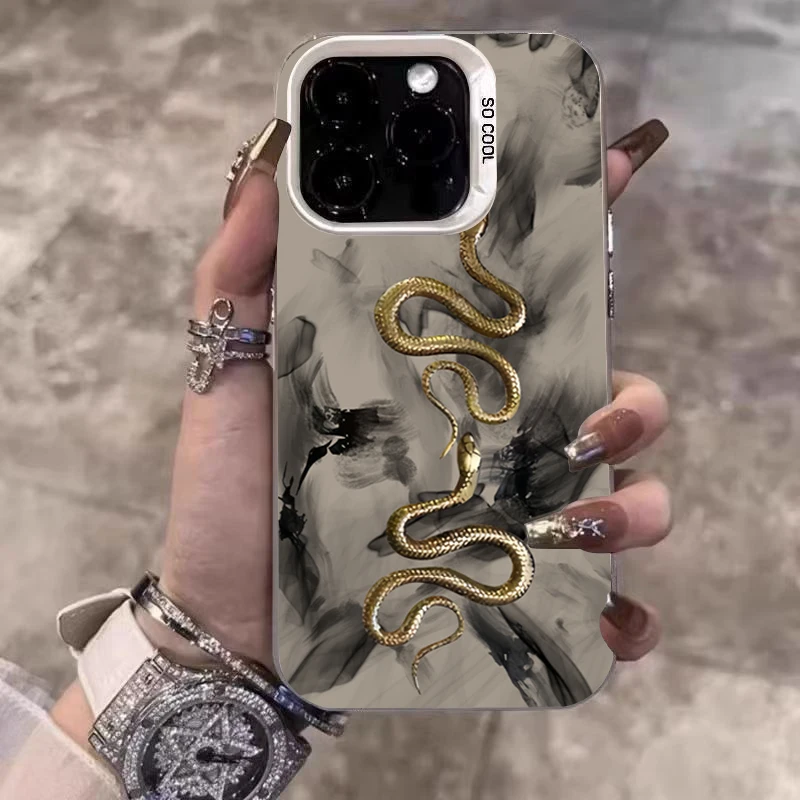 Comprar Funda de teléfono IMD plateada galvanizada de serpiente dorada de lujo para iPhone 17 16 15 14 13 12 11 Pro Max 17 Air 16E 7 8 Plus X XS XR
