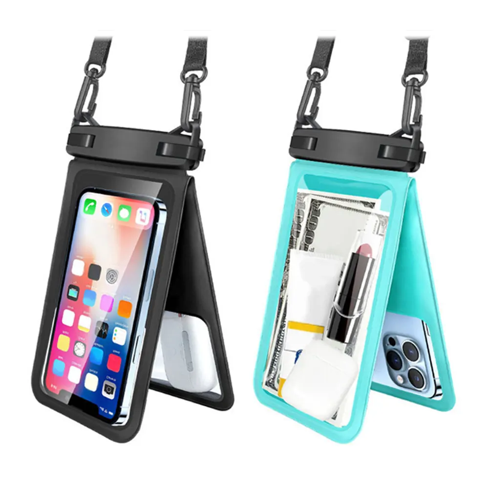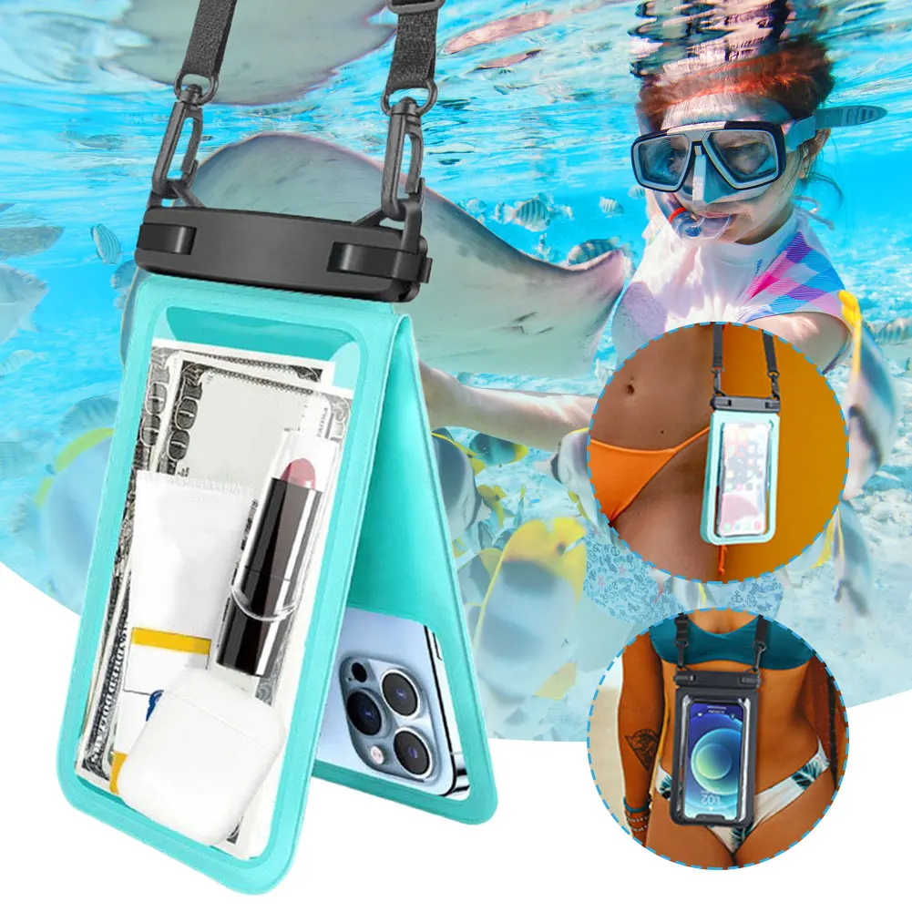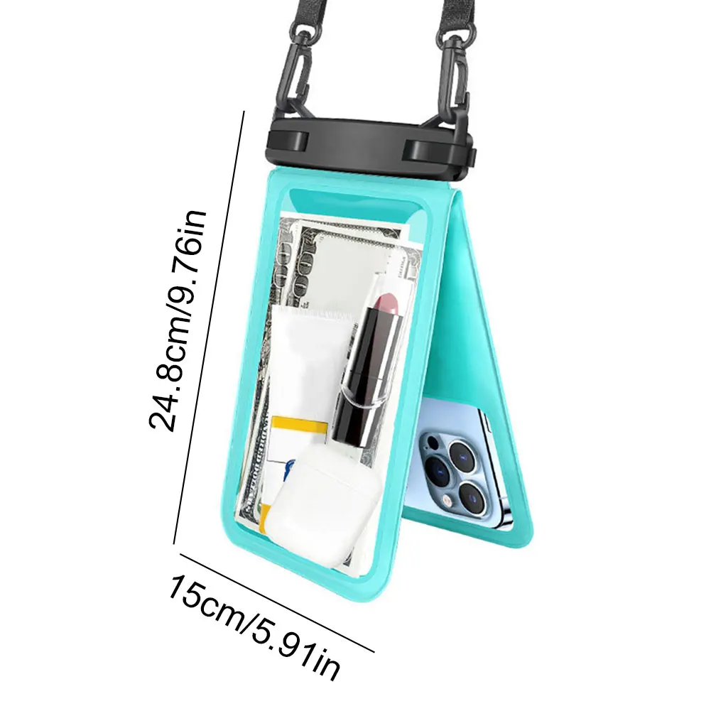 Bolsa impermeable para teléfono de doble espacio con cordón ajustable Bolsa para teléfono celular a prueba de agua IPX8 Fundas subacuáticas para teléfono para vacaciones en la playa Viajes Crucero Elementos esenciales