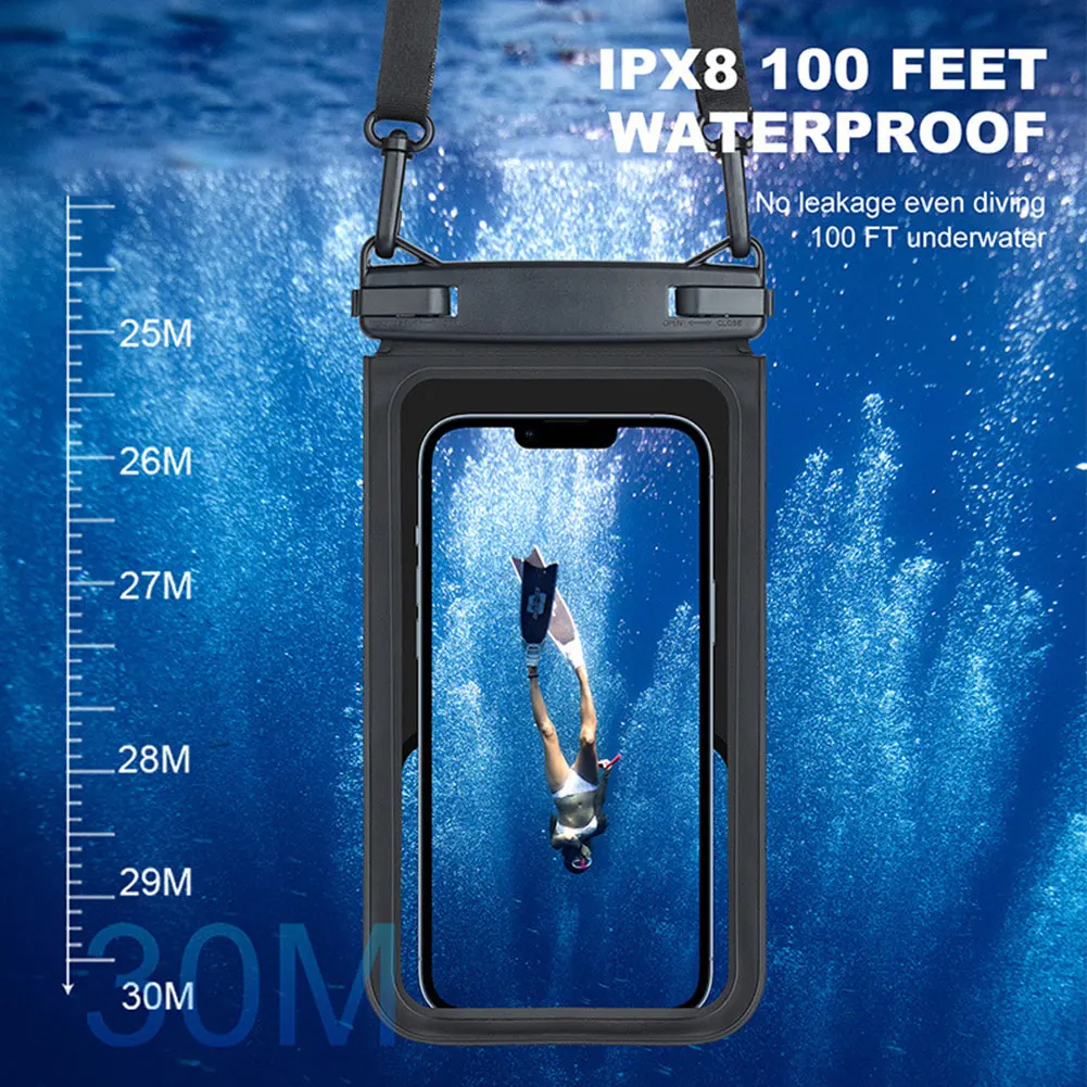 3. Diseño de precisión y tacto sensible:Fabricadas con PVC blando de alta calidad, las fundas subacuáticas para teléfonos tienen una ventana frontal transparente para un tacto ultrasensible.Utilice su teléfono como cámara subacuática dentro de la bolsa seca para obtener fotografías y vídeos nítidos.