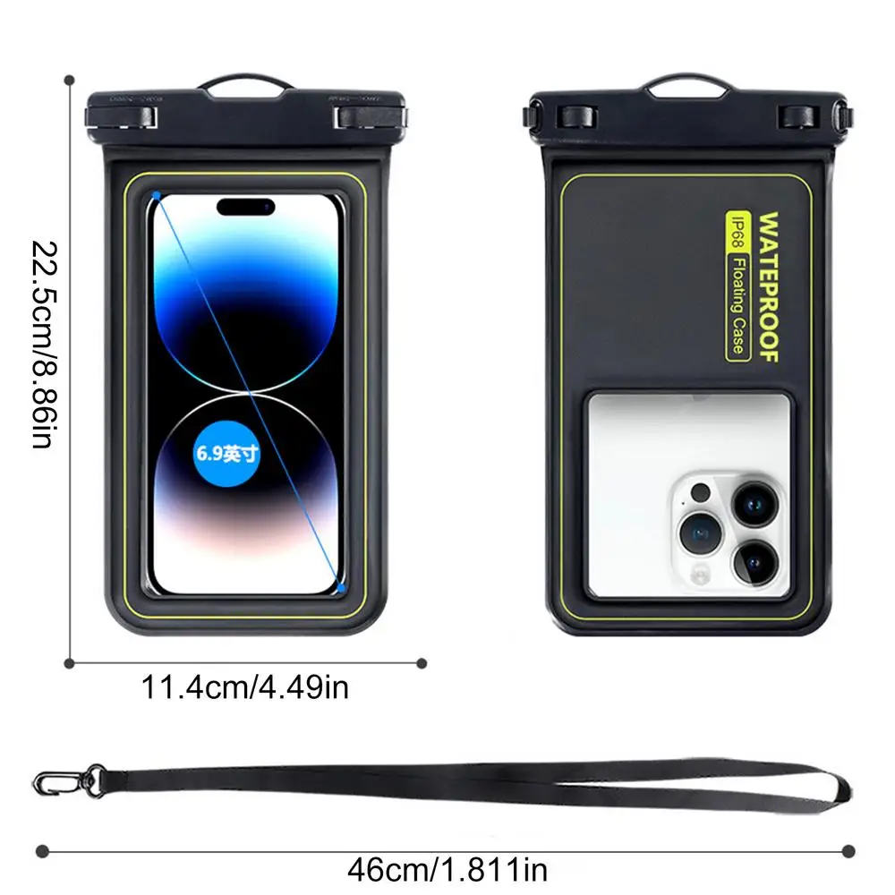 Bolsa de baño impermeable flotante, funda de teléfono, funda de teléfono a prueba de agua con cordón, bolsa de teléfono impermeable para teléfono