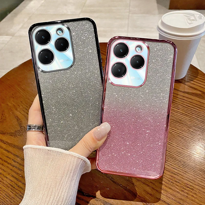 Comprar Funda de teléfono para Infinix Hot 40 Pro, X6836, X6837, Funda trasera de silicona chapada en purpurina degradada de lujo