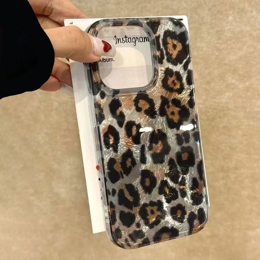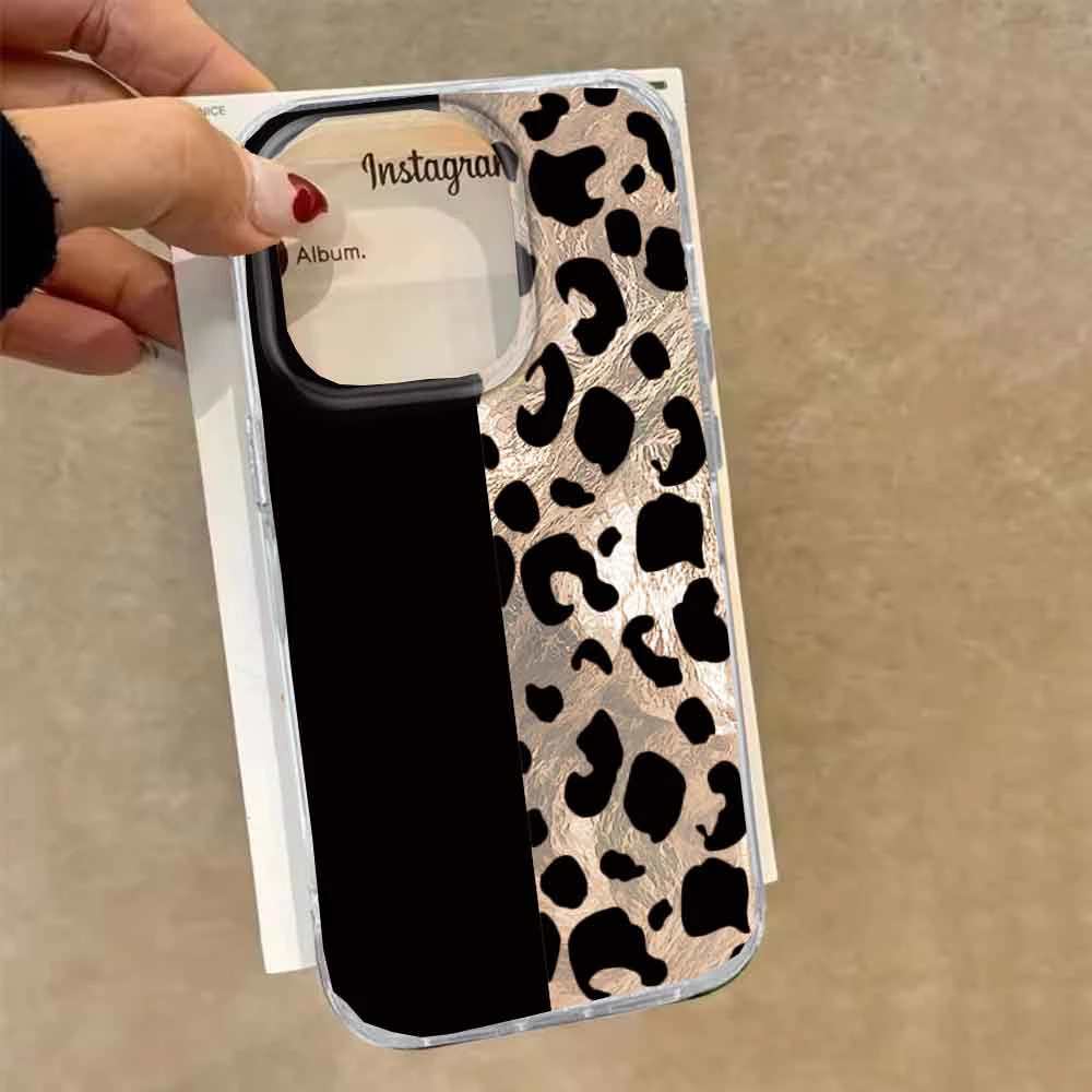 Funda de teléfono INS coreana con estampado de leopardo negro para mujer y niña, funda de tpu Ultra Shell para Samsung Galaxy S25 S24 S23 S22 S21 S20 FE Plus