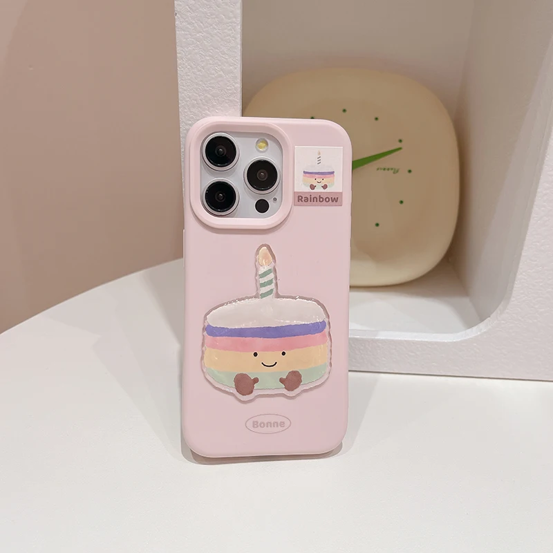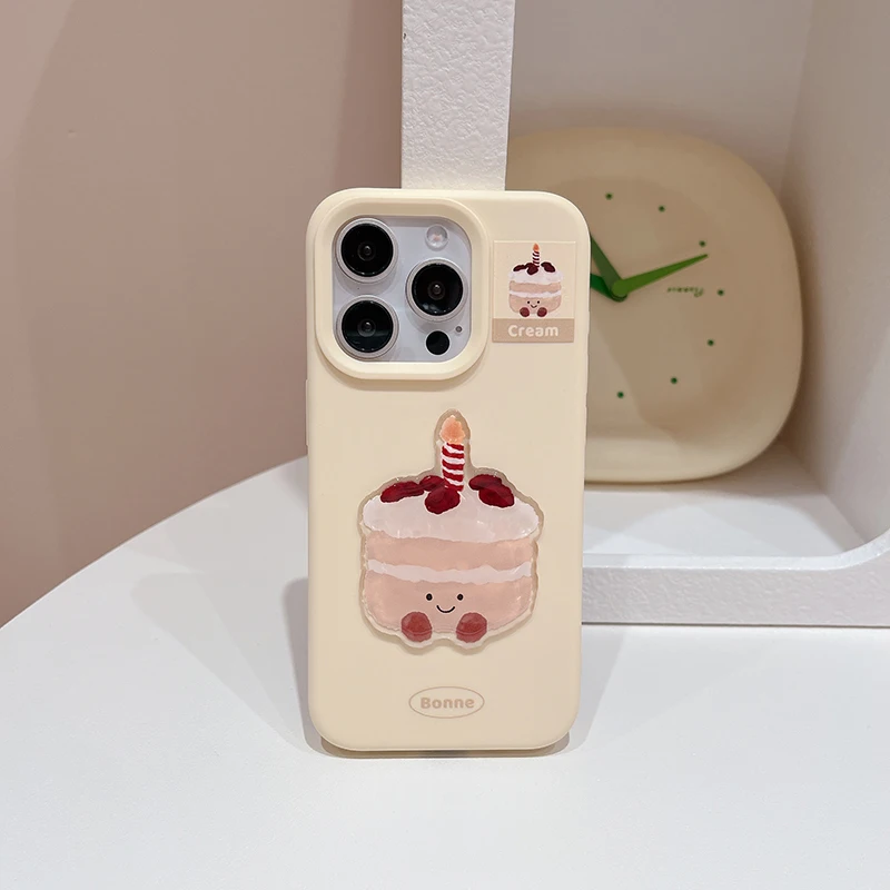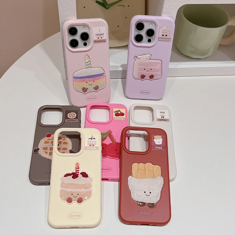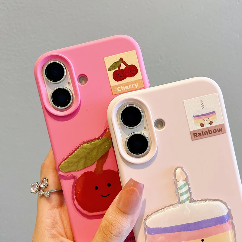 Funda de teléfono de postre con pastel y cereza de dibujos animados divertidos Ins para iPhone 16 Pro Max 17 15 13 14 Funda trasera suave bonita