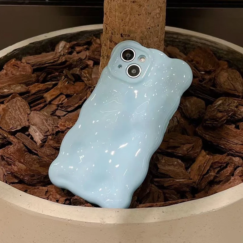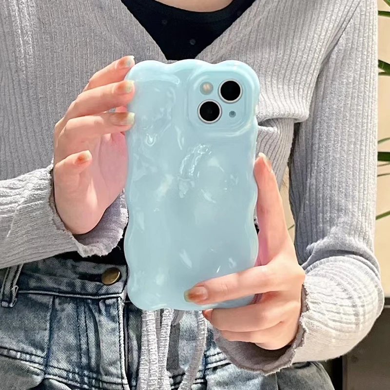 Funda de teléfono Ins Fashion Macaron Blue Wave Bubbles para iPhone 16 Pro Max 15 13 12 11 14 Plus, funda trasera de TPU a prueba de golpes