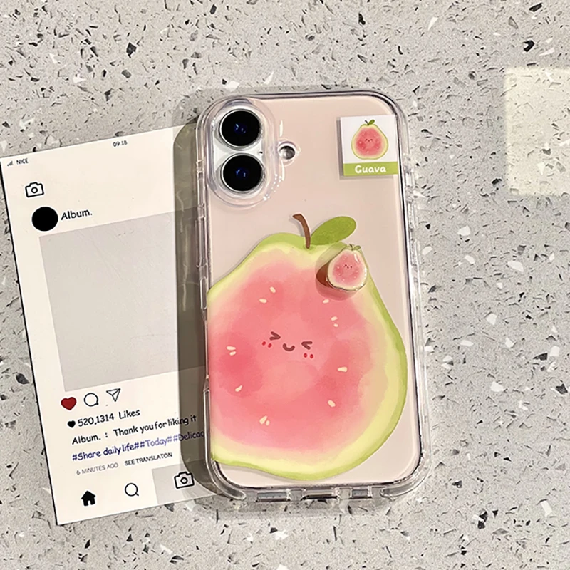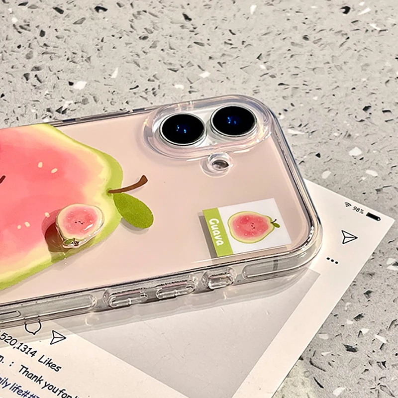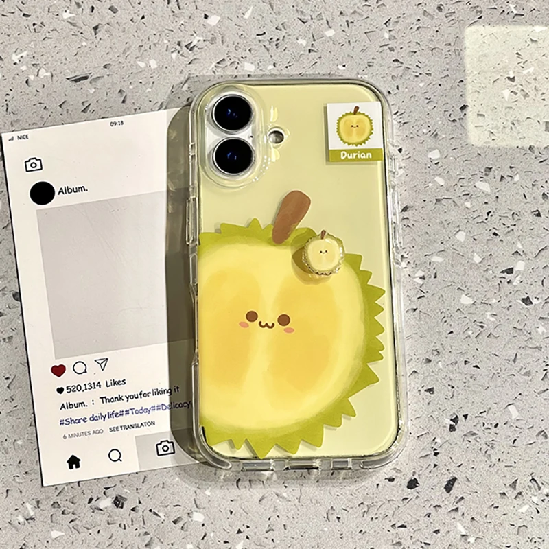 Funda de teléfono Ins Summer Fruit 3D Guava Durian aguacate para iPhone 17 16 15 13 14 Pro Max, funda trasera bonita a prueba de golpes de dibujos animados