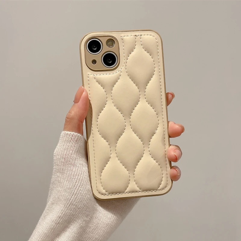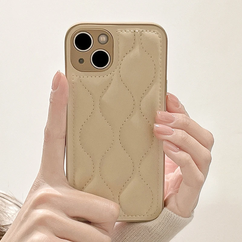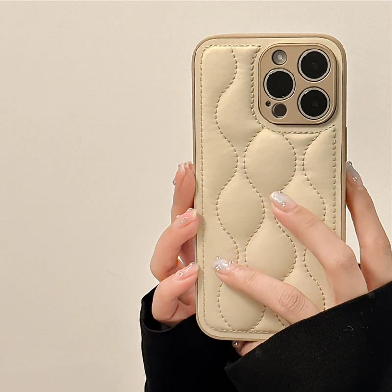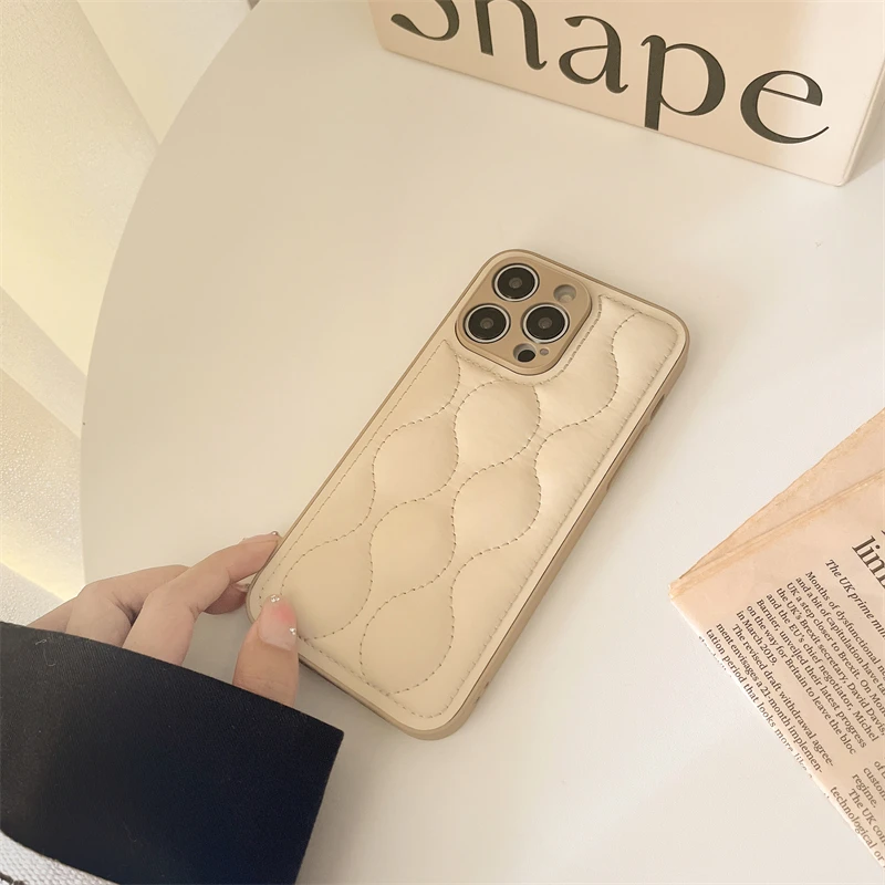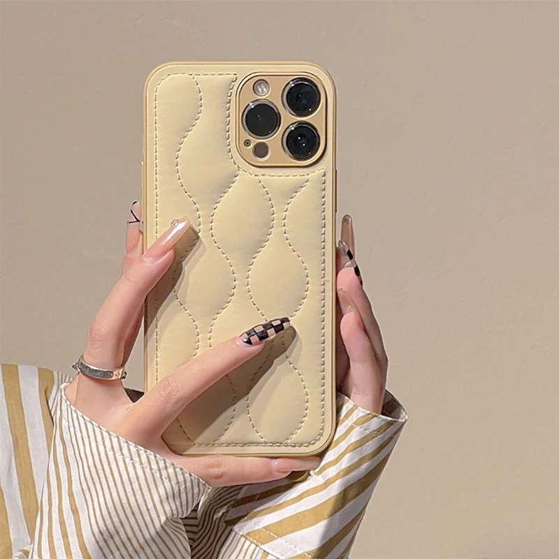 Funda de teléfono Ins Wave Curve Beige Down Jacket para iPhone 13 11 12 14 Pro Max XS XR X 14 Plus, funda de silicona de cuero PU a prueba de golpes
