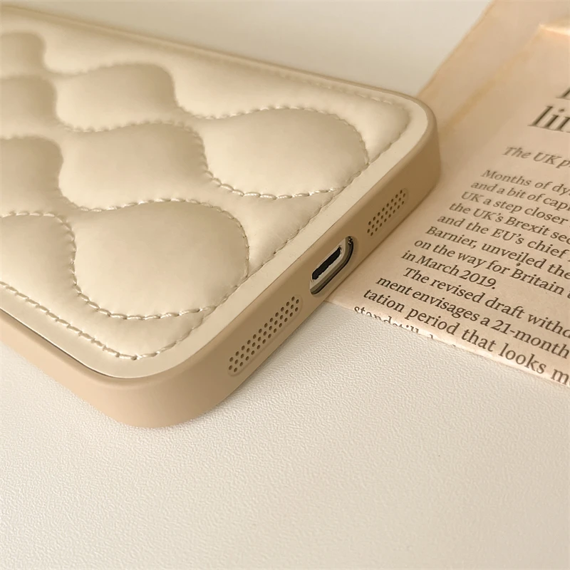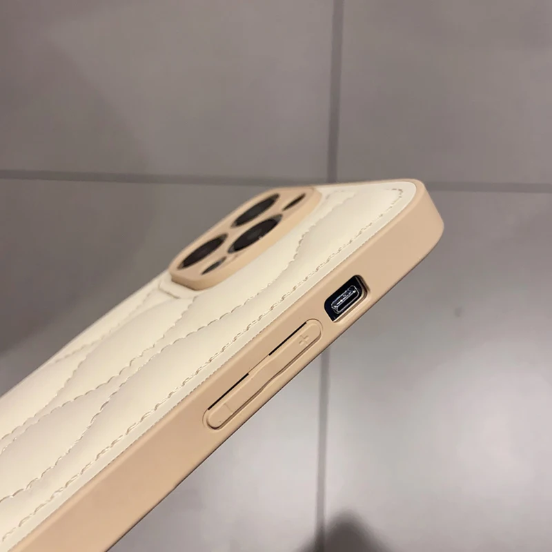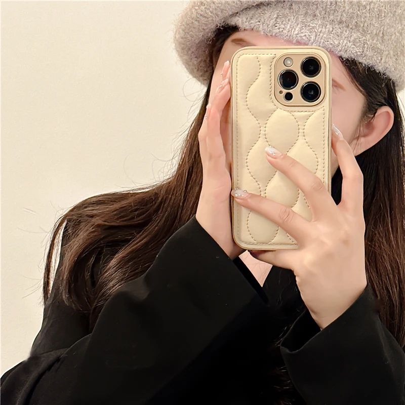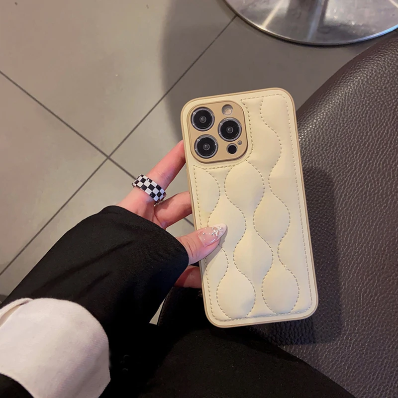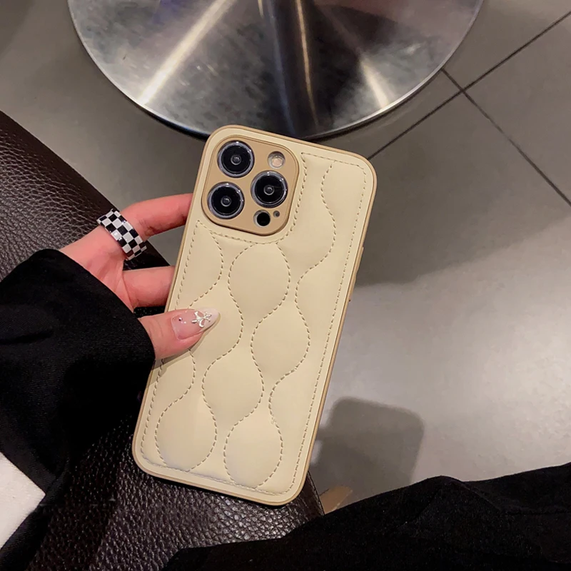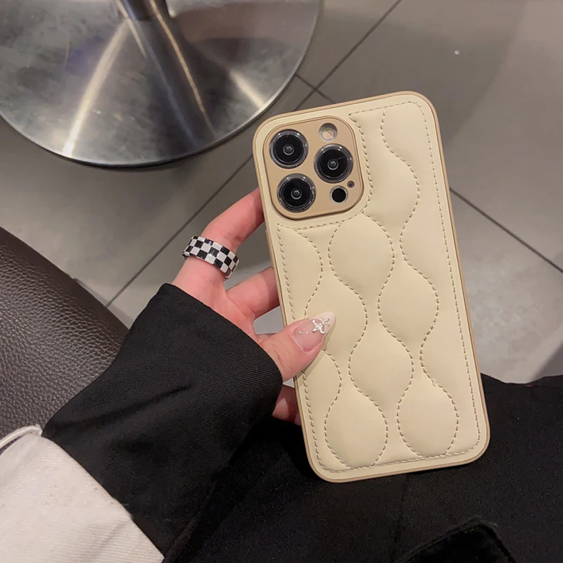 Funda de teléfono Ins Wave Curve Beige Down Jacket para iPhone 13 11 12 14 Pro Max XS XR X 14 Plus, funda de silicona de cuero PU a prueba de golpes
