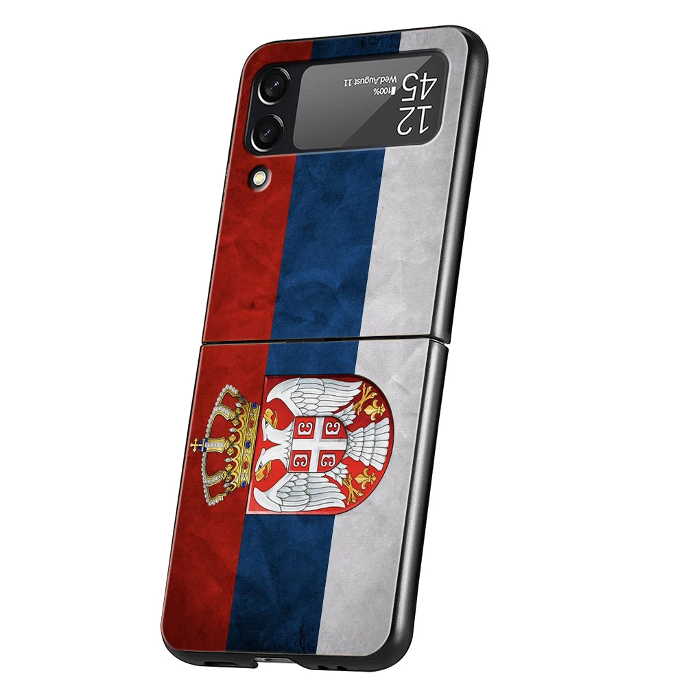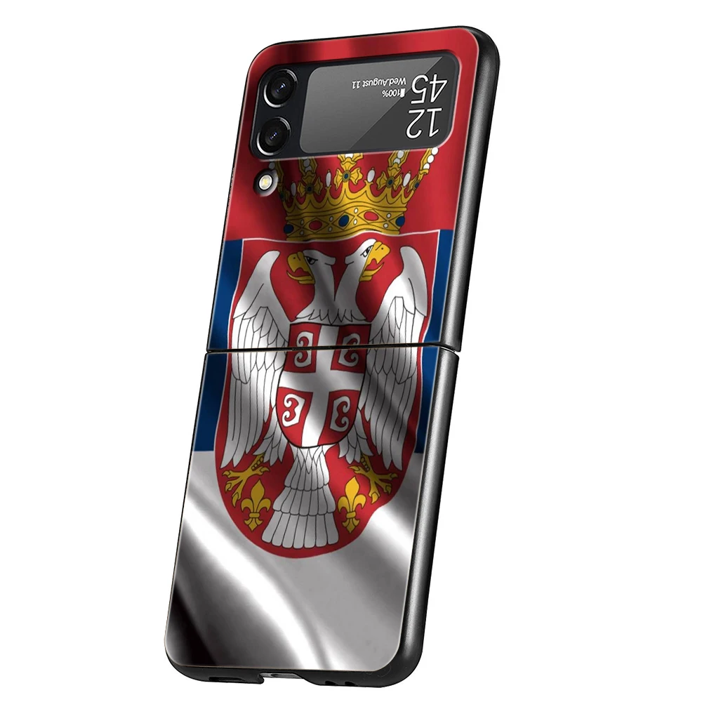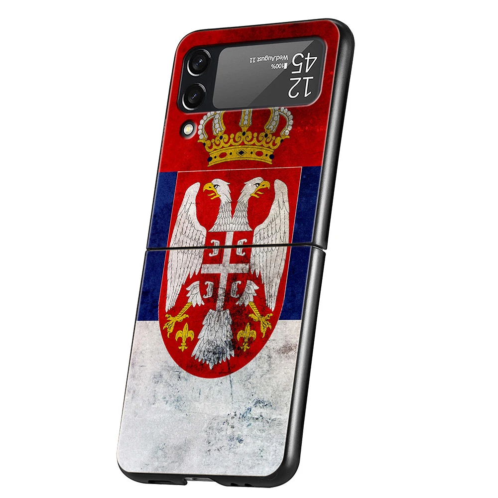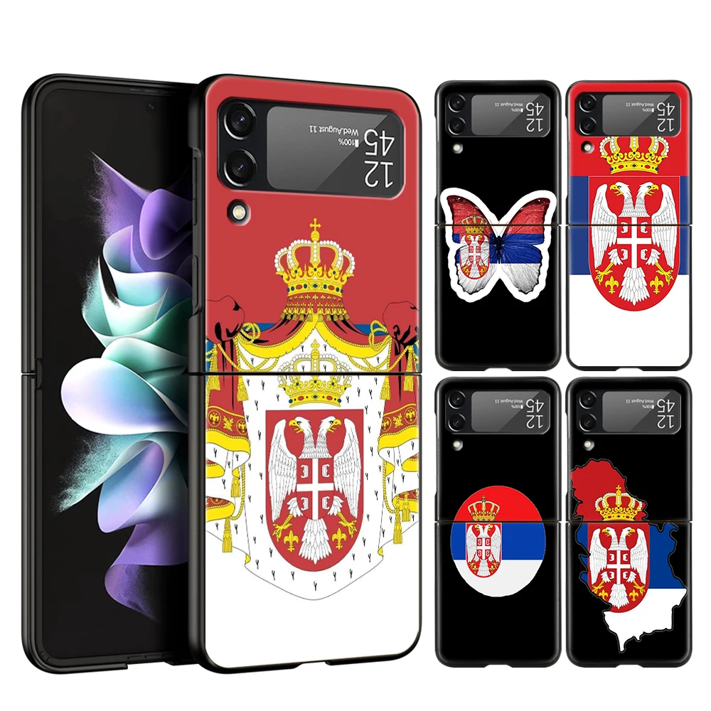 Comprar Funda de teléfono con insignia de la bandera de Serbia para Samsung Galaxy Z Flip 3 4 5 6 7 PC plegable negro duro para Samsung Z Flip3 Flip4 Flip5