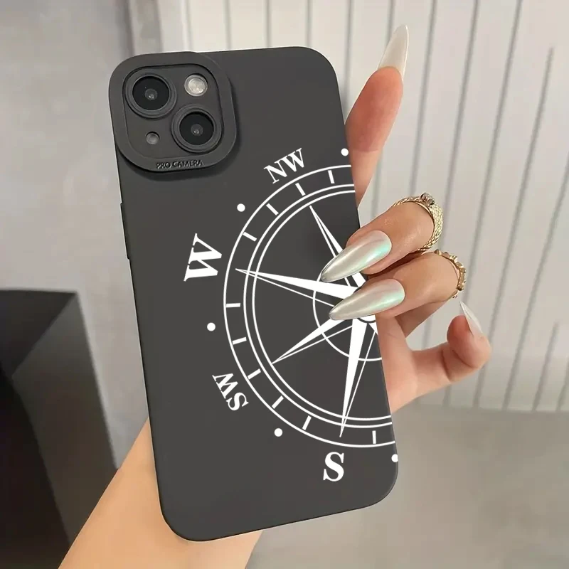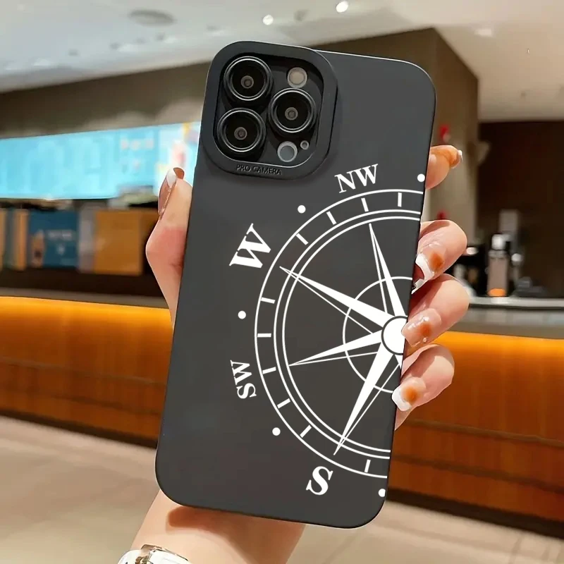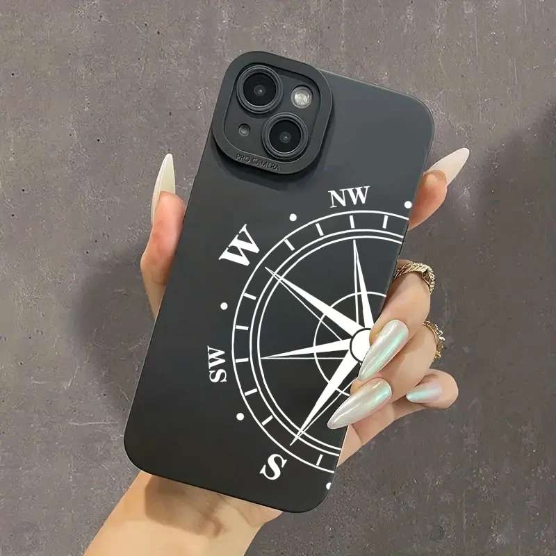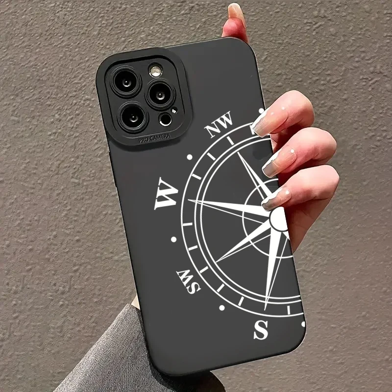 Phone Case For iPhone 11 Case iPhone 15 16 Pro Max 14 13 12 Mini X XS XR 7 8 Plus SE 2020 Compass Pattern Shockproof Soft Cover