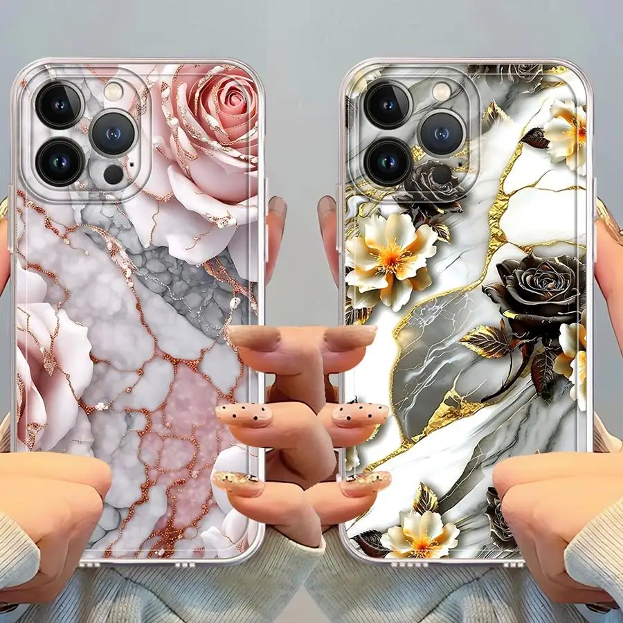 Comprar Funda de teléfono para iPhone 15 14 16 Plus 13 12 11 Pro Max XR 7 8 SE 16e XS cubierta transparente interesante mármol