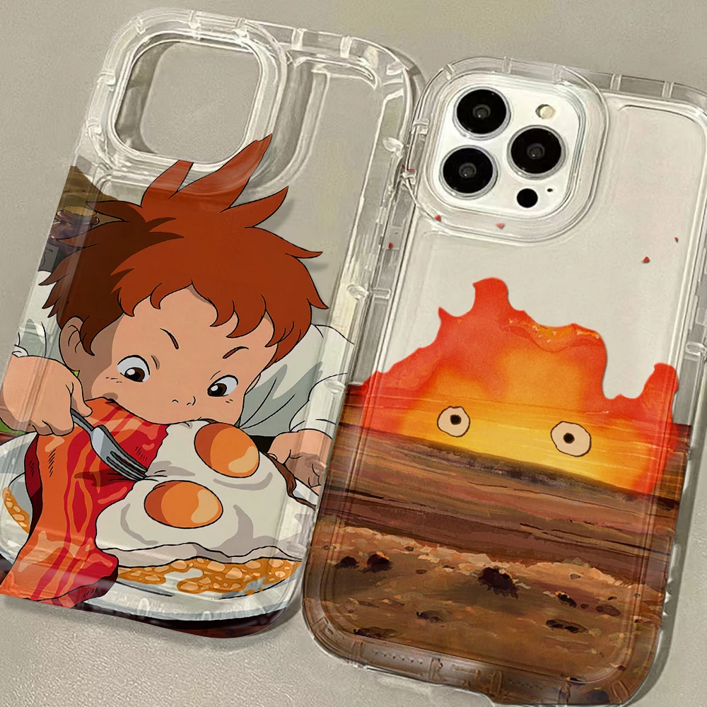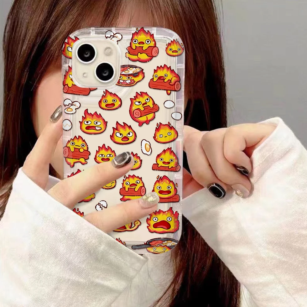 Funda de teléfono para iPhone 16 15 14 13 12 11 Pro Max 7 8 Plus X XR XSMax encantadora llama M-Moving Airbag anticaída contraportada transparente