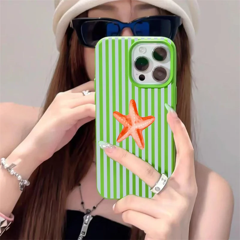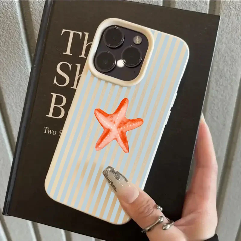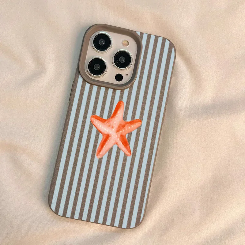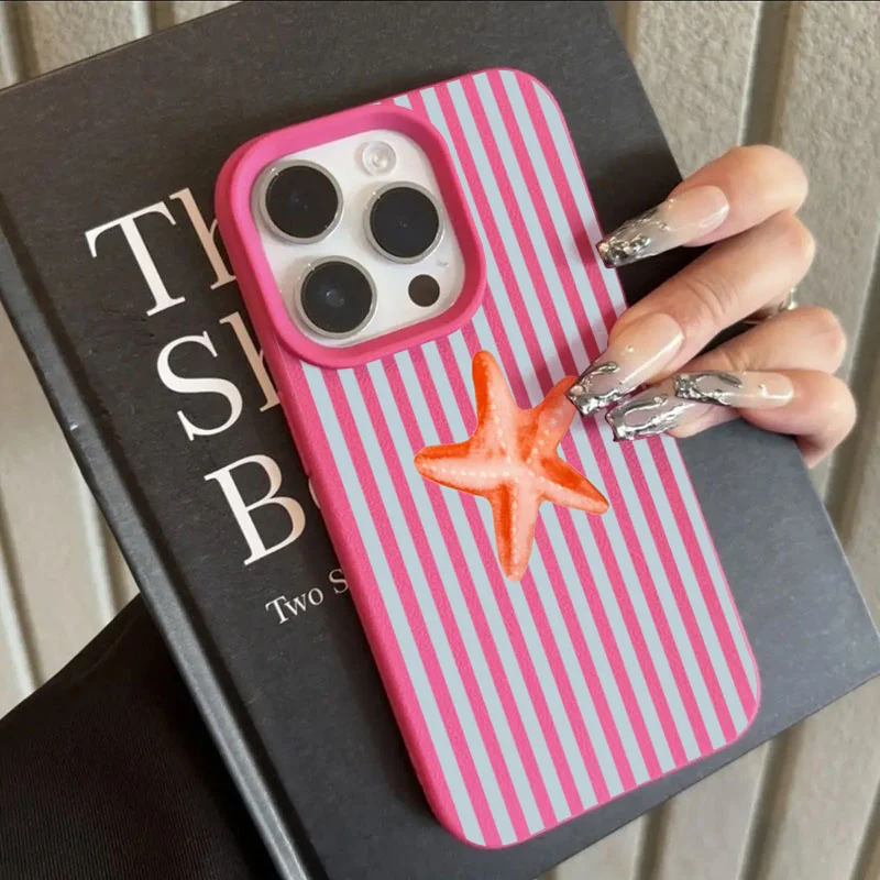 Funda de teléfono con patrón de rayas de estrellas de mar, funda de verano para iPhone 16 15 14 13 12 11 Pro Max X XR XS Max 15 Plus 16E, funda trasera suave