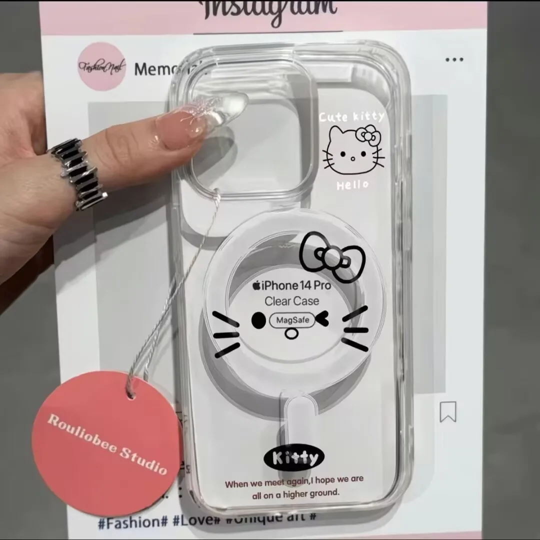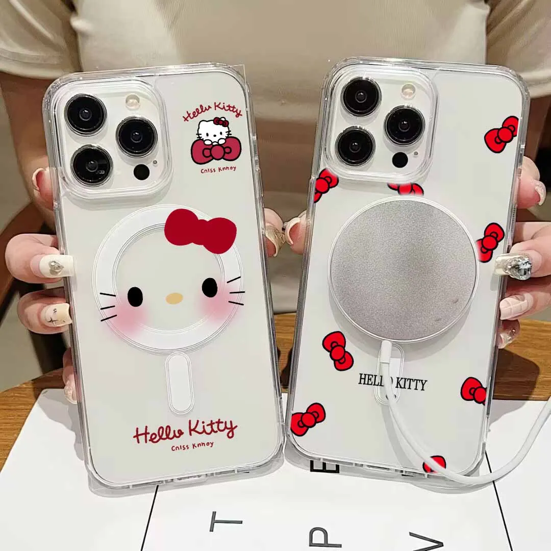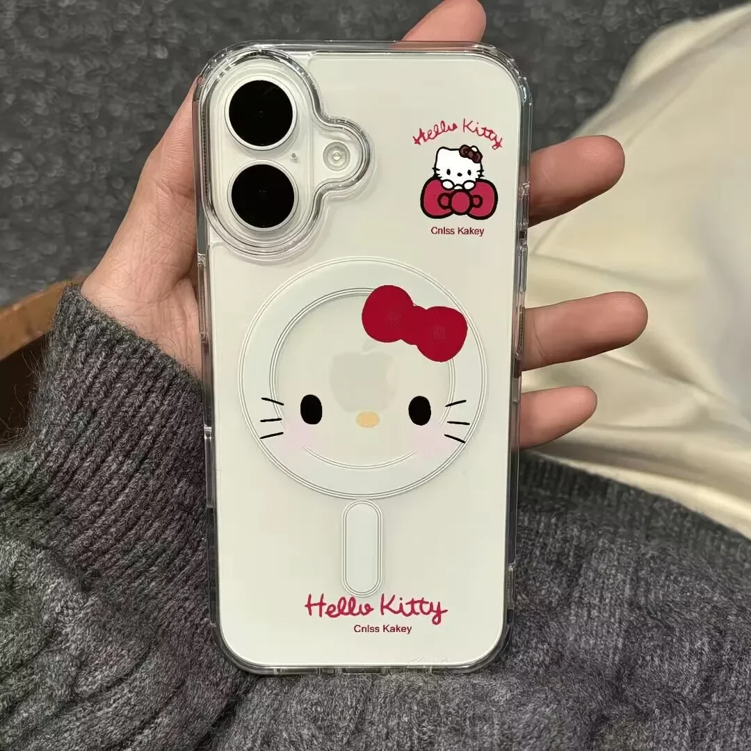 Comprar Funda de teléfono para iPhone 16 15 14 13 Pro Max Plus 17 Pro 17 Air 16e 13 Mini carga inalámbrica magnética Magsafe Hello Kitty Y2K