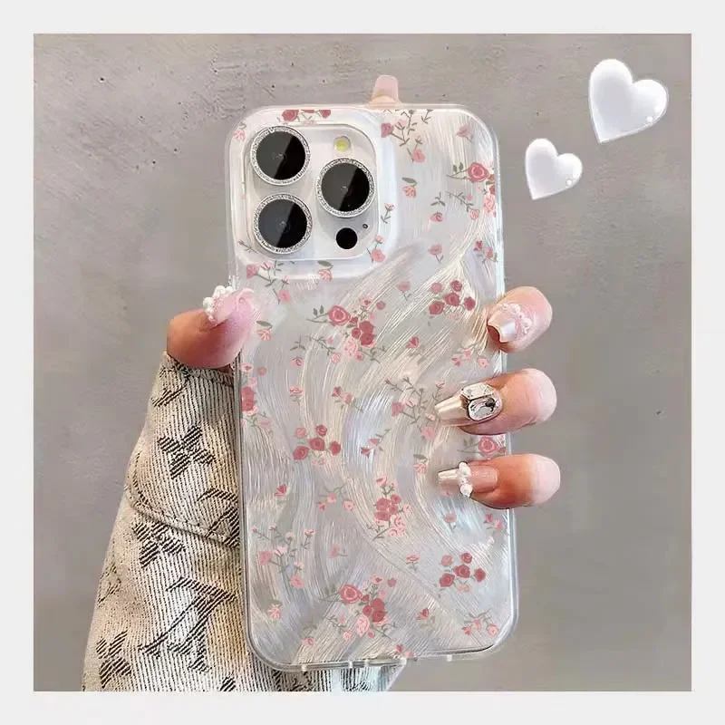 Funda de teléfono para iPhone 16 15 Pro Max 16E 14 13 12 11 XS XR funda de flores pequeñas rosas para iPhone 7 8 Plus SE2