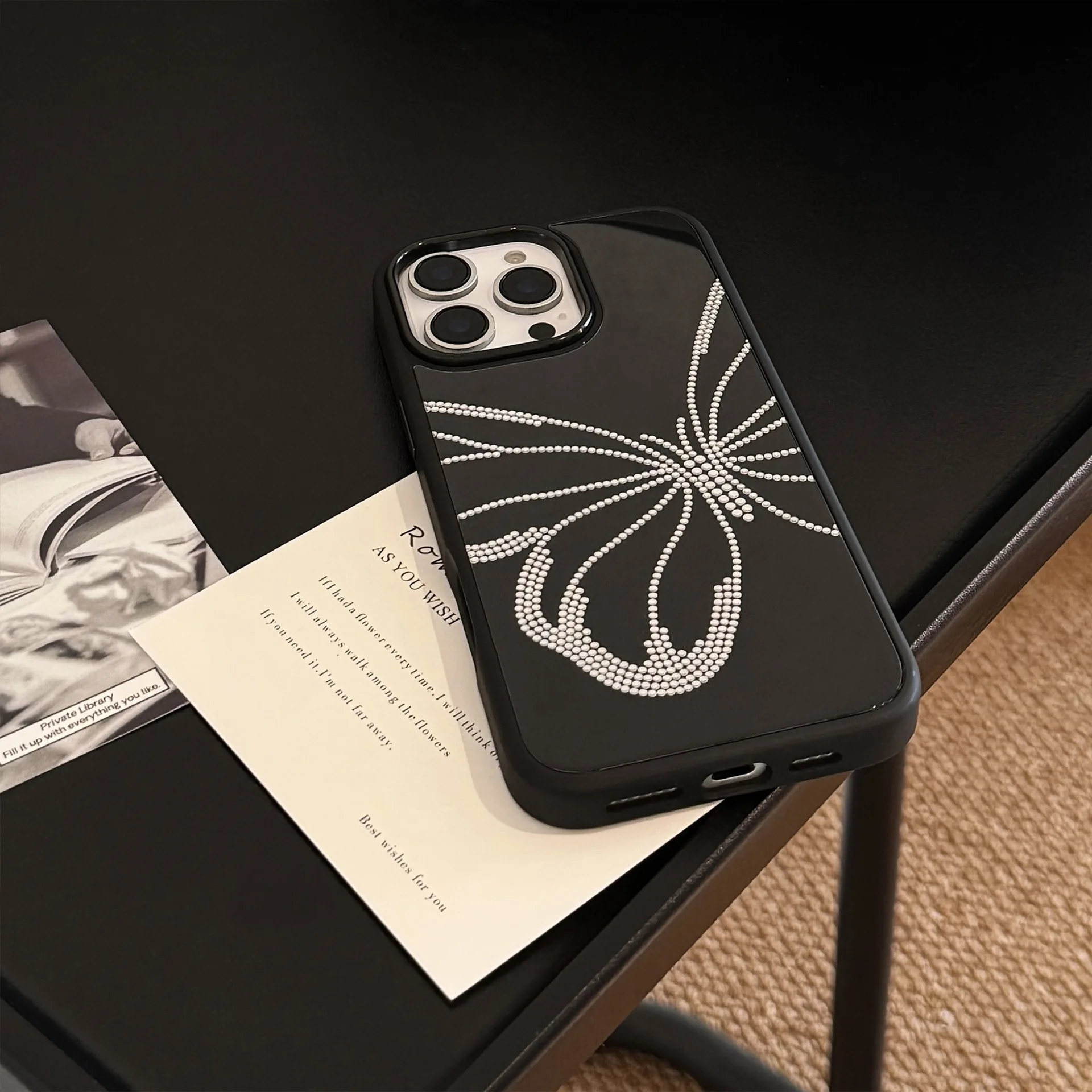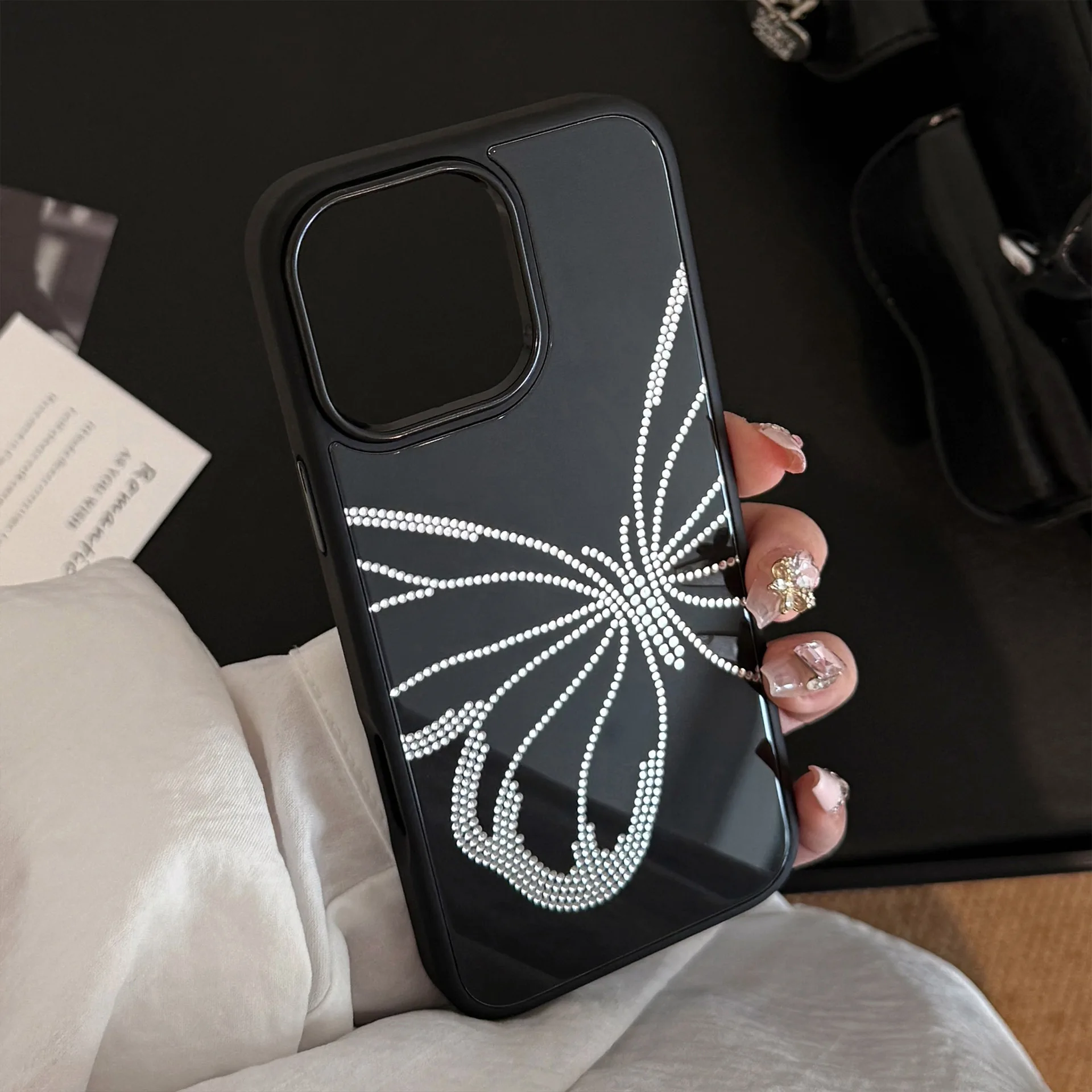 Comprar Funda de teléfono para iPhone 16 Pro Max 15 14 Plus 13 12, funda dura de lujo con diamantes de imitación y mariposa a prueba de golpes para regalo de niñas