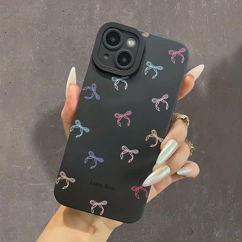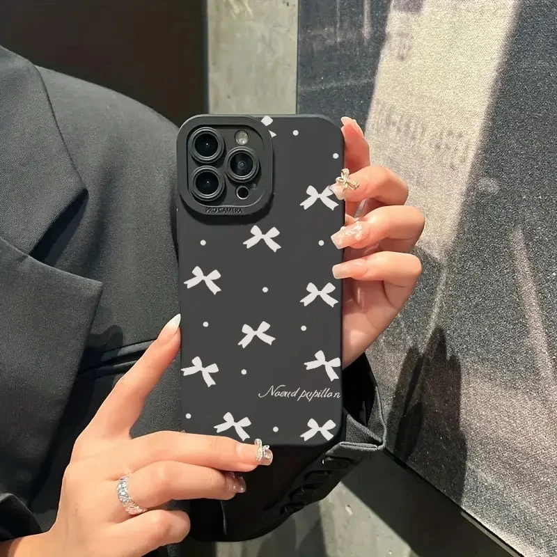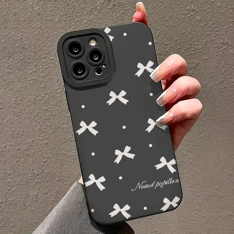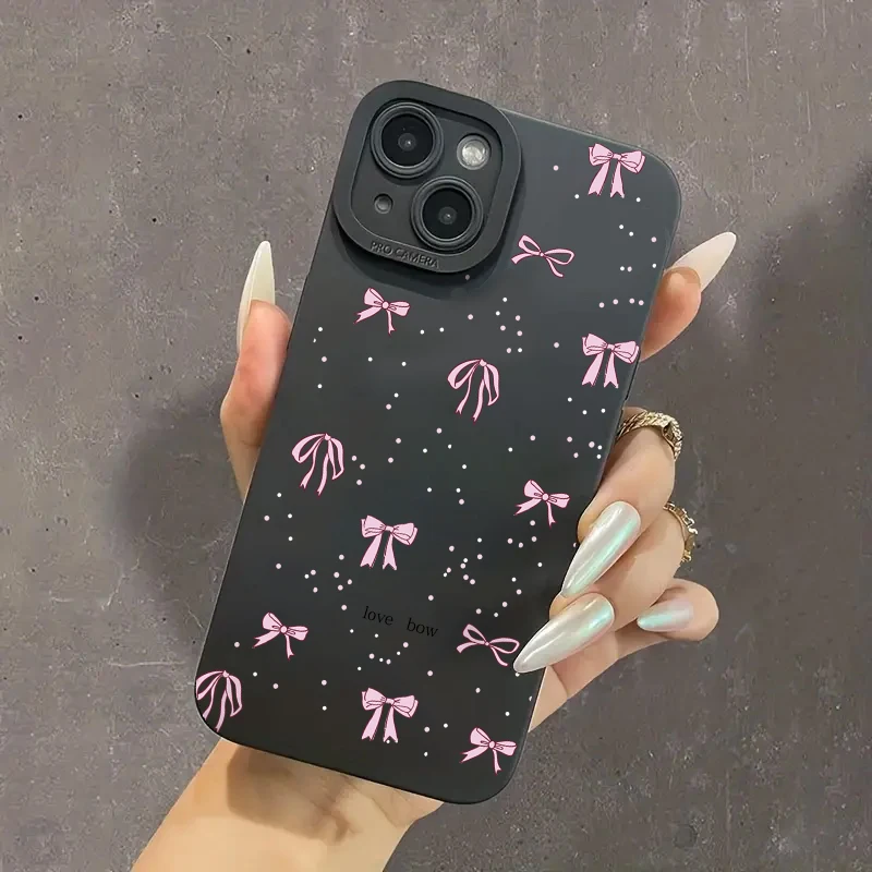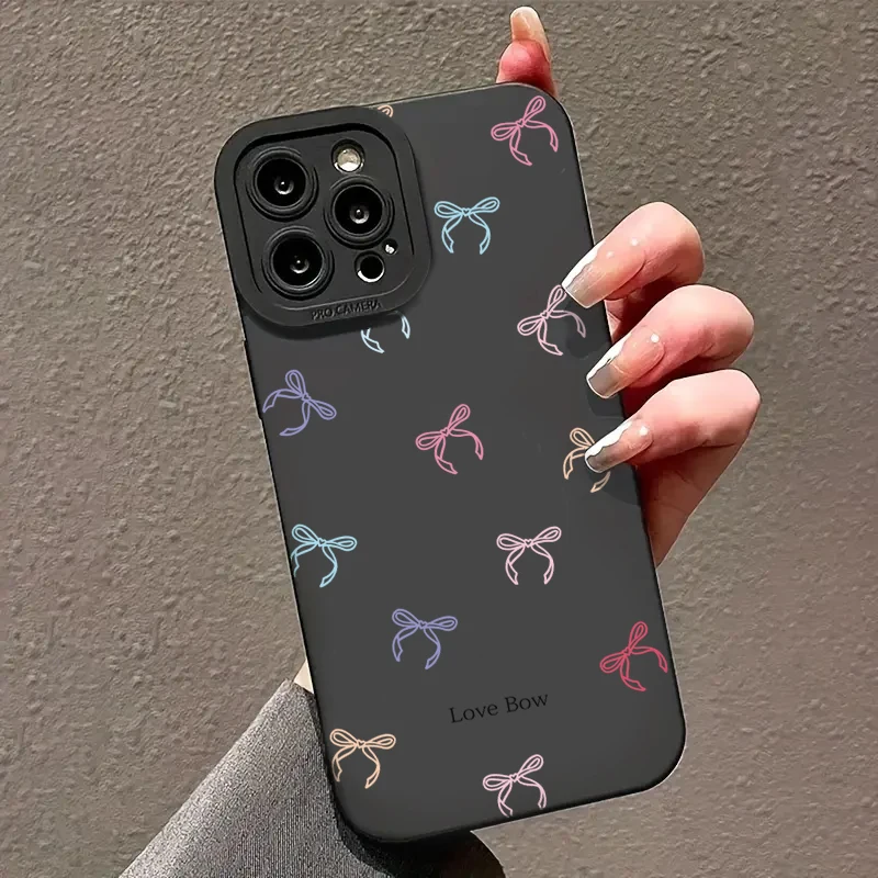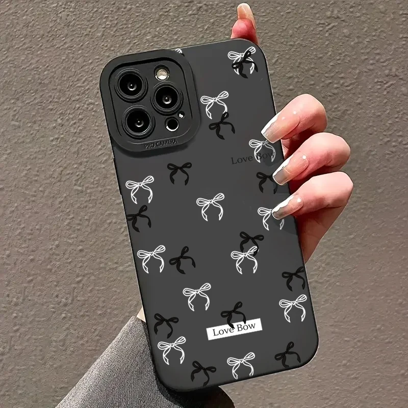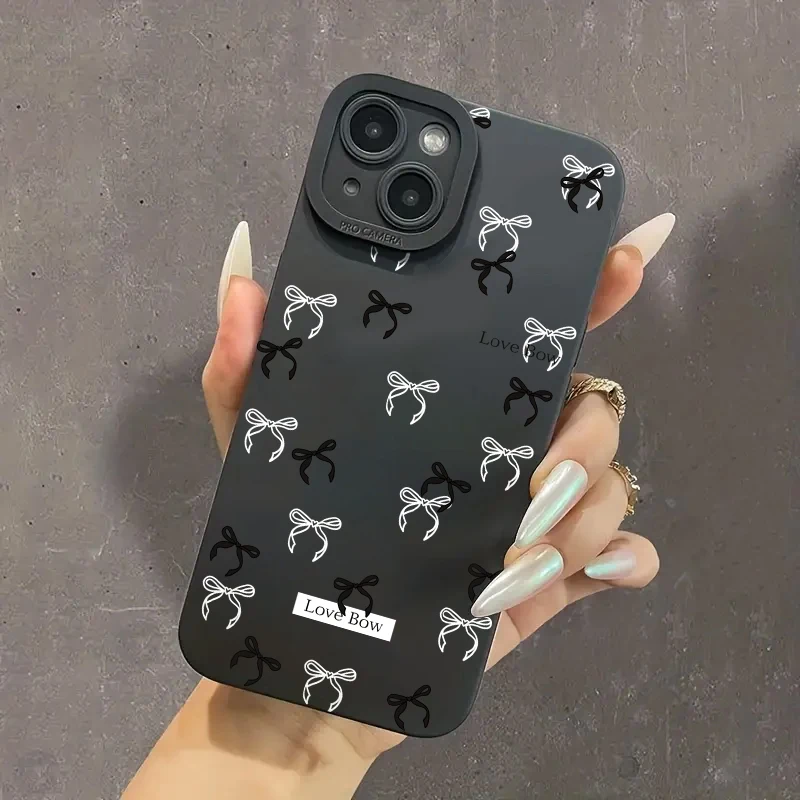 Phone Case For iPhone 16 15 14 Pro Max 11 12 13 Pro Max Mini 7 8 Plus XR X XS Max SE 2 Black Bow Print Silicone Shockproof Cover